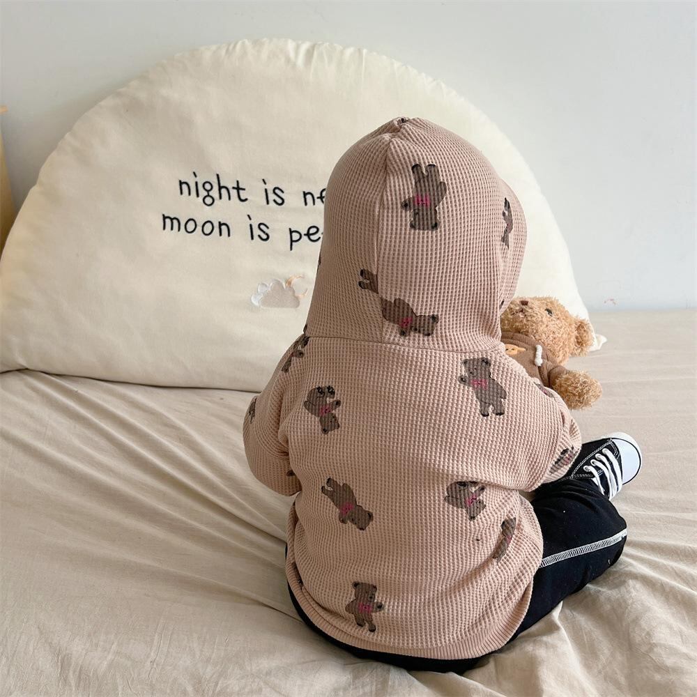 ベビー服 男女兼用 ワッフル 小熊柄 パーカー カーディガン 長袖 綿100% 幼児 アウター 春秋 かわいい 普段使い