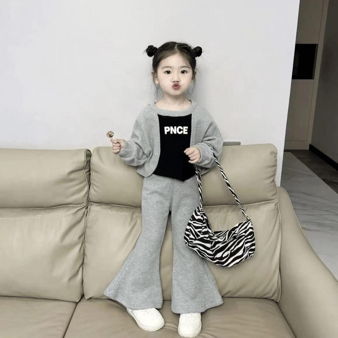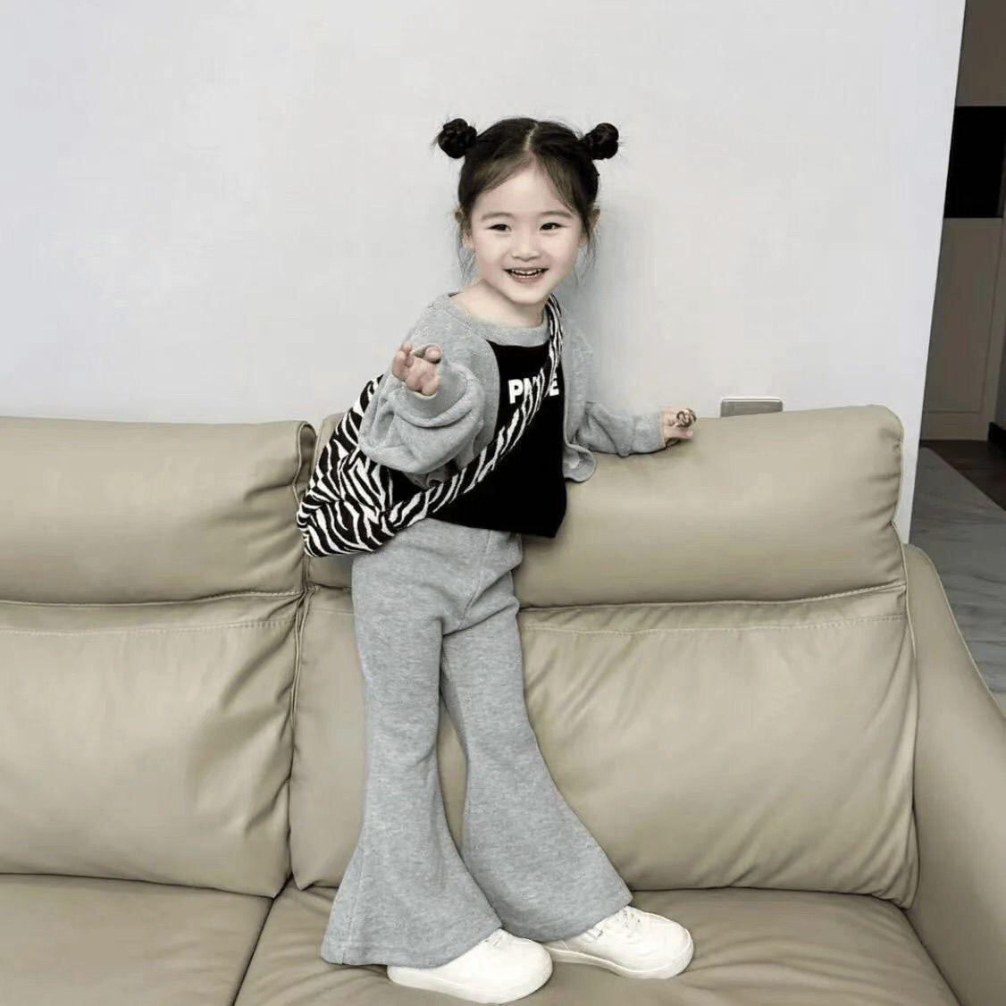 子供服 スウェット 上下セット ガールズ 春秋 薄手 長袖 ロングパンツ 2点セット かわいい アルファベット カジュアル 普段着 グレー