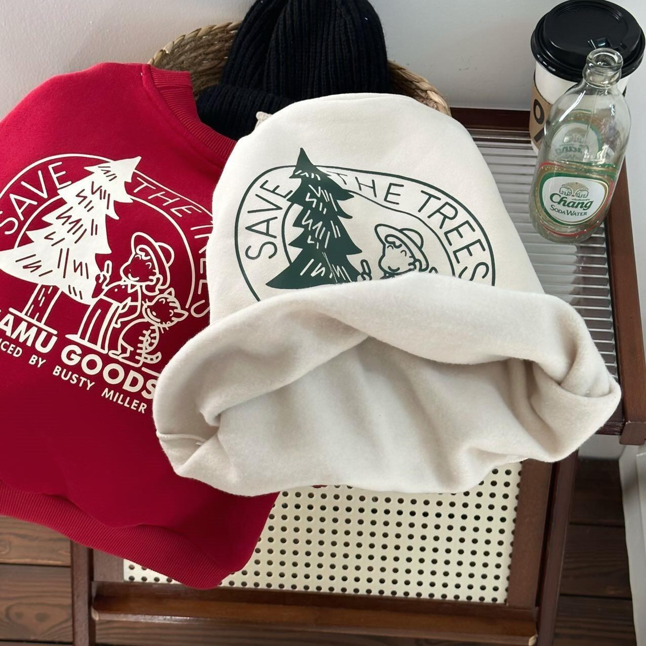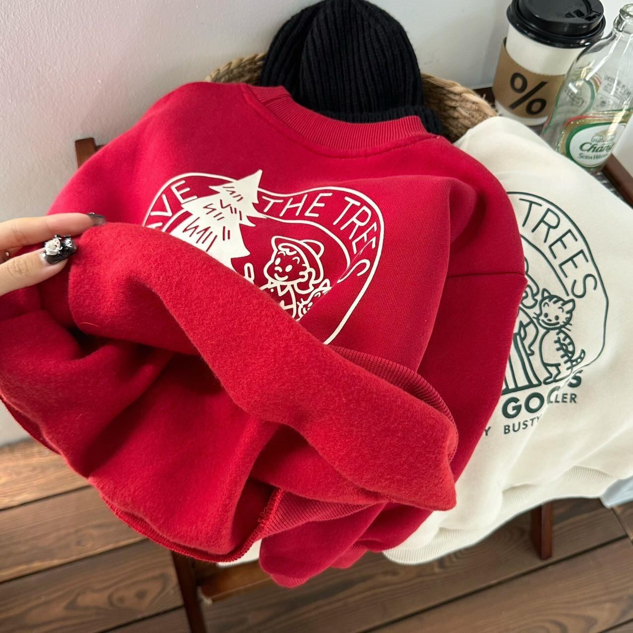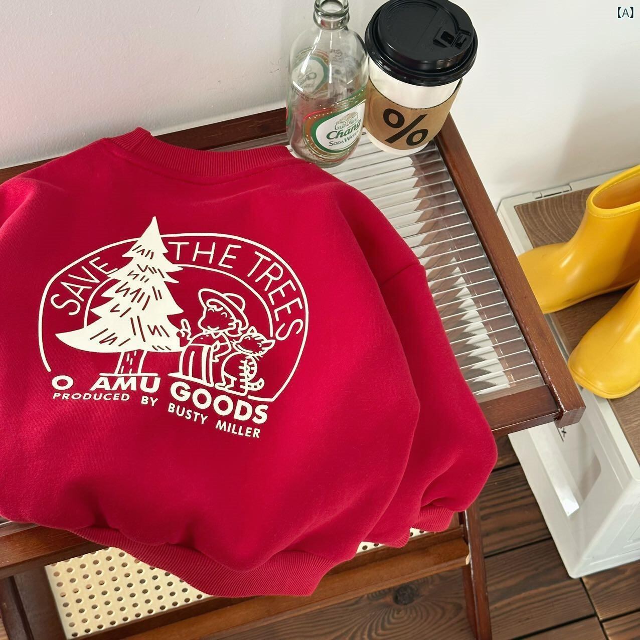 子供服 スウェット 秋冬 クリスマス 新年 男の子 裏起毛 厚手 トレーナー ベビー 赤色 カートゥーン トップス 女の子 普段使い