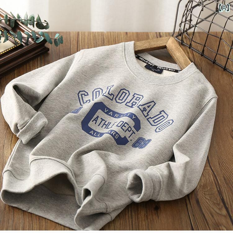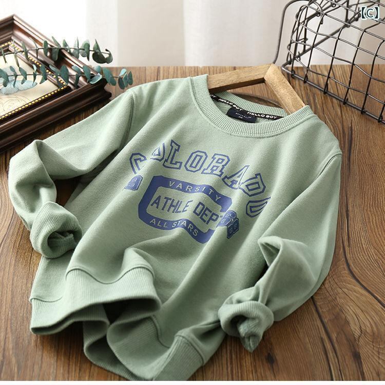 子供服 スウェット 春秋 中大童 長袖Tシャツ プルオーバー カットソー 普段着 部屋着 運動着 薄手 灰色 黄色 緑色 青色 レンガ色 白色 黒色 紺色