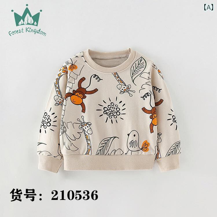 キッズ 男の子 トレーナー トップス 長袖 ラウンドネック コットン 100% 普段着 通学着 アニマルプリント 3歳 4歳 5歳 6歳 7歳 8歳