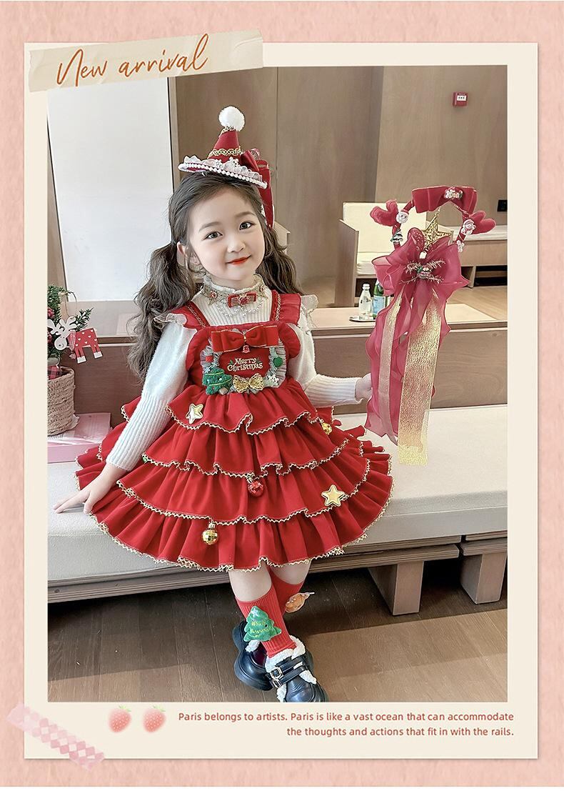 ワンピース 女児 ロリータ クリスマス 赤色 子供服 チュールスカート チュール 公園着 発表会 誕生日会 結婚式