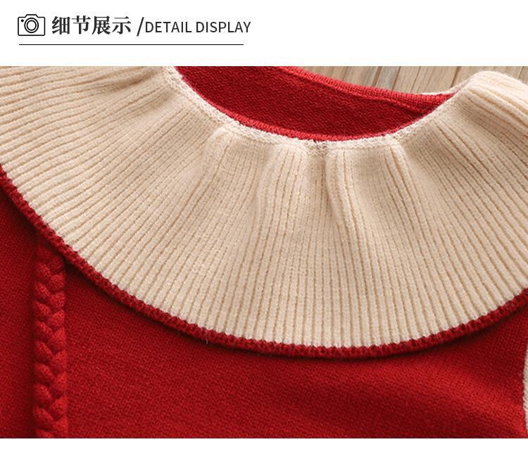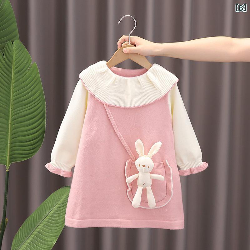 ワンピース キッズ 女の子 クリスマス プリンセス ニットワンピース クマ柄 長袖 Aライン チュール フリル かわいい 秋冬 子供服 赤 ピンク系