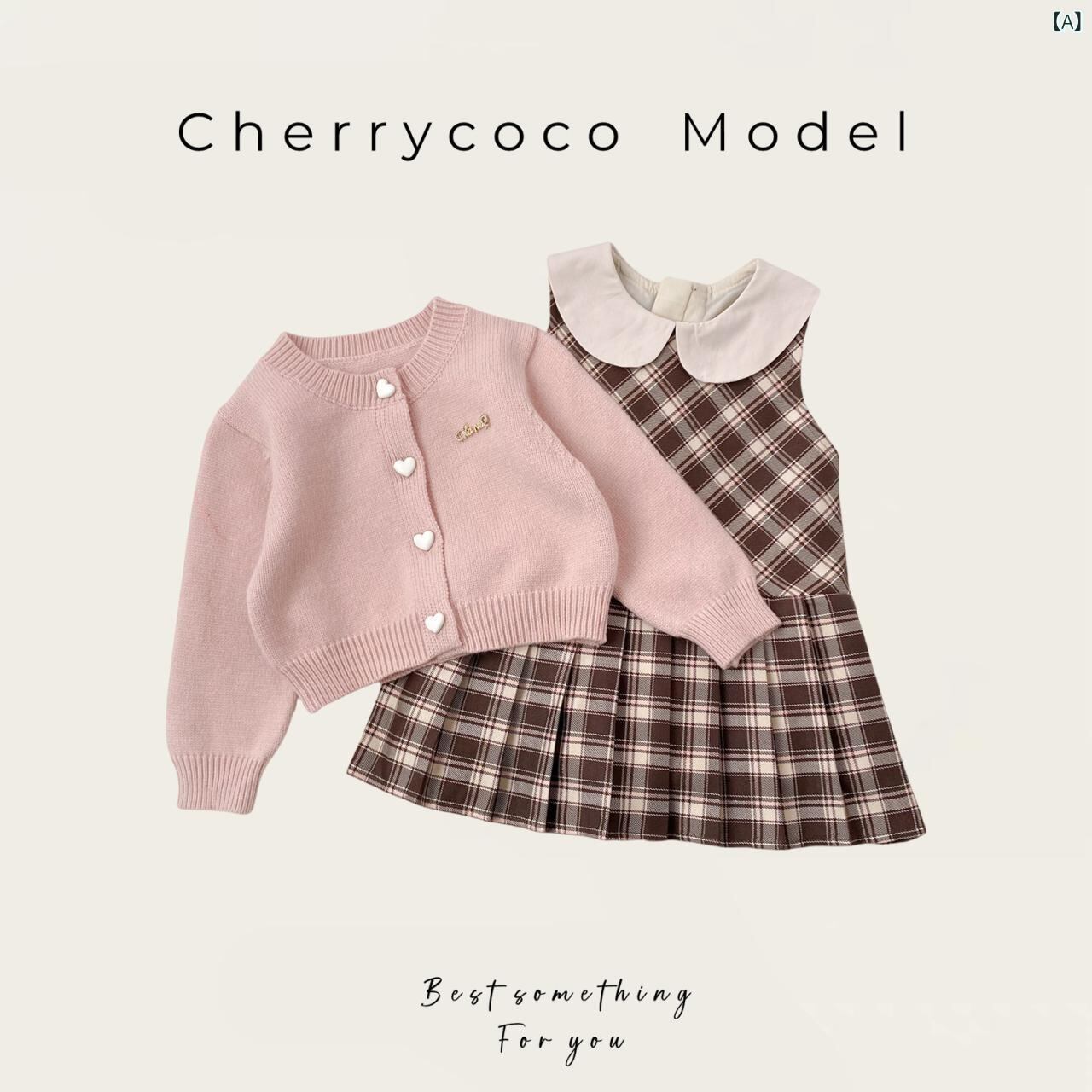 子供服 ニット カーディガン & プリーツ ワンピース 2点セット 女の子 秋冬 格子柄 発表会 結婚式 お呼ばれ かわいい ガーリー