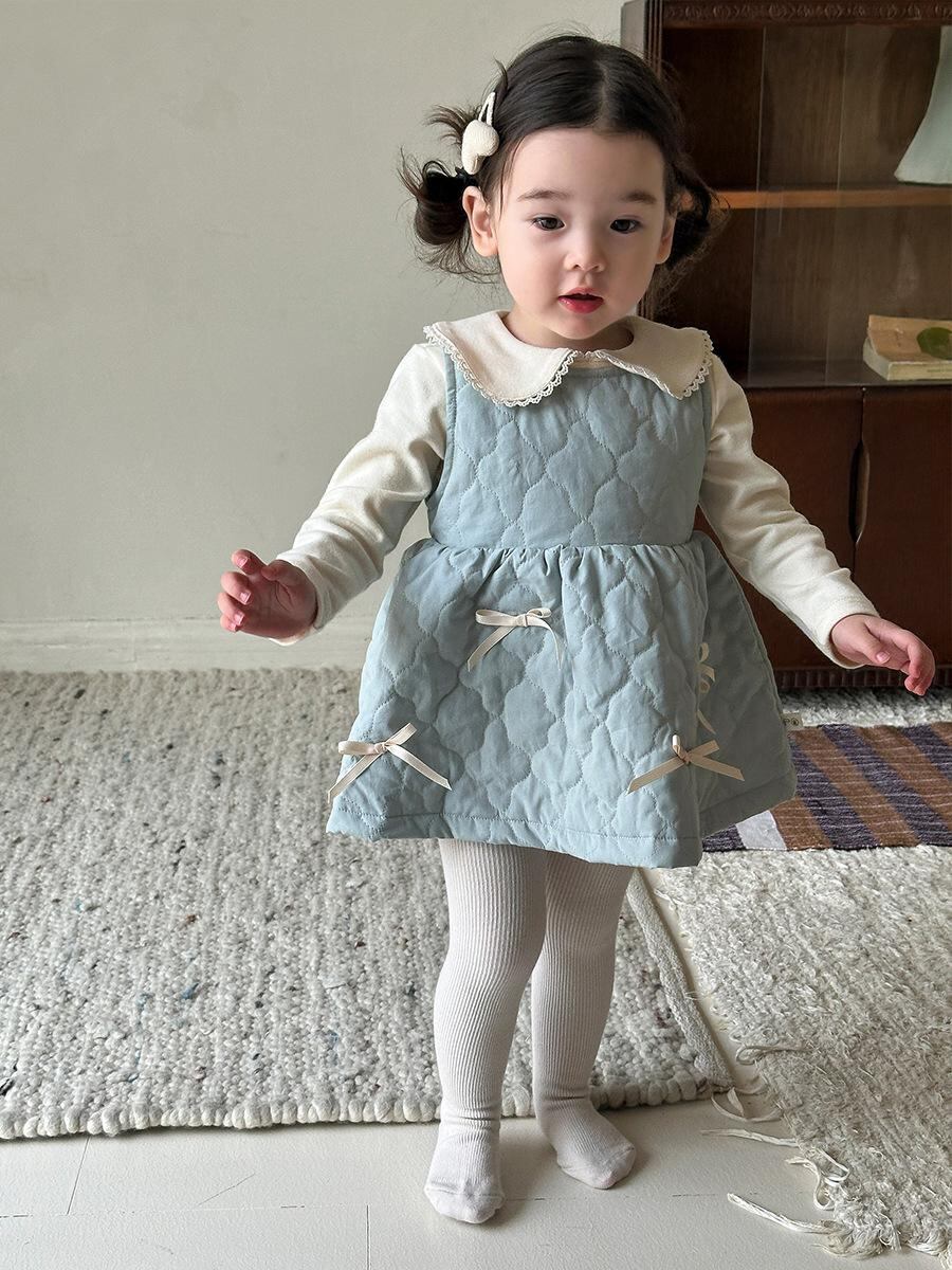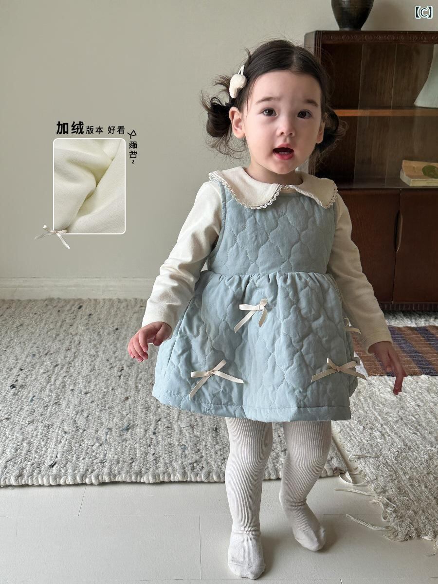 ワンピース ベビー服 女の子 背心ワンピース Aライン チュールスカート フリル 襟付き トップス 上下セット 2点セット かわいい おしゃれ 秋