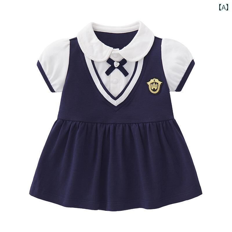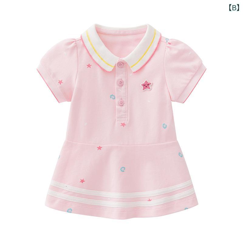 ワンピース ベビー・キッズ 女の子 ポロネック Aライン スカート 73CM 80cm 90cm 100cm 綿100% 夏 秋 通園 普段使い