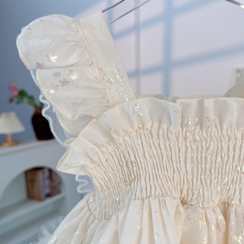 ワンピース キッズ 女の子 ウェディングドレス サマー フォーマル ノースリーブ プリンセス チュール バタフライ Aライン 米ホワイト