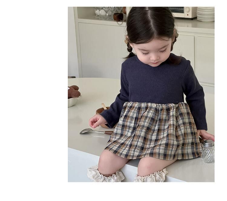 子供服 ワンピース 女児 秋物 長袖 Aライン チェック柄 ドッキング ベビー服 カバーオール 綿 幼児 普段着 かわいい 66cm 73cm 80cm 90cm 100cm