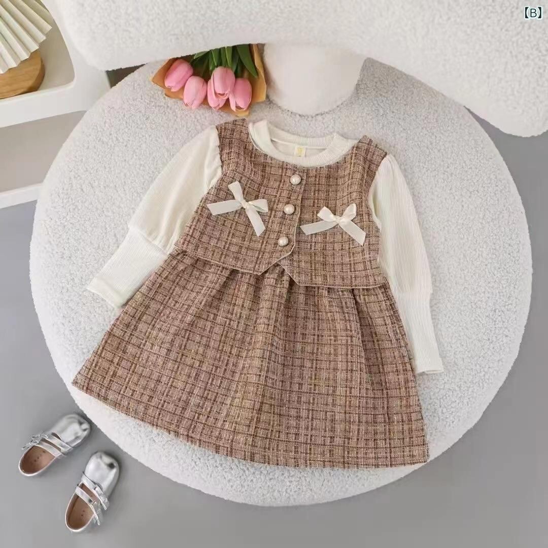 ワンピース ベビー服 女の子 長袖 チェック柄 チュールスカート 春秋 幼児 かわいい プリンセス ピンク系 普段使い