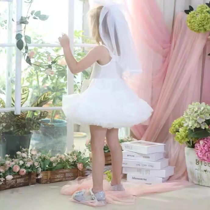ワンピース 子供 女の子 吊りスカート プリンセス スカート チュールスカート ケーキスカート 白 ホワイト 柔らかい 通気性 吊り紐スカート ノースリーブスカート 裏地付き 綿 発表会 結婚式 パーティー フォーマル 春夏