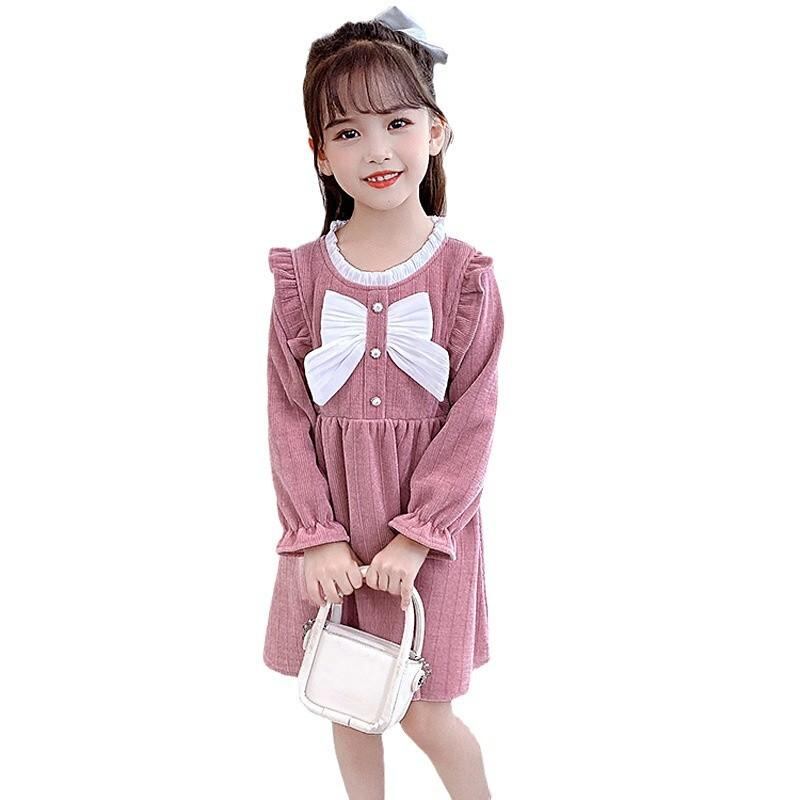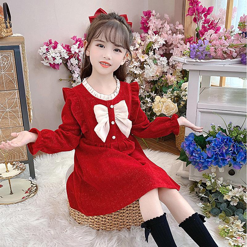 ワンピース キッズ 女の子 長袖 コーデュロイ Aライン 春秋 かわいい 発表会 フォーマル 赤 ピンク 100cm 110cm 120cm 130cm 140cm 150cm