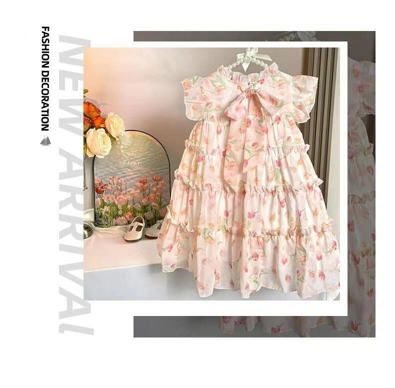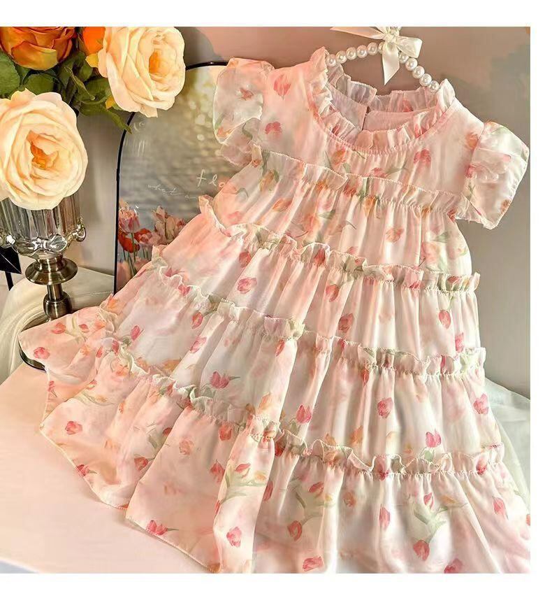 ワンピース 女の子 子供 ファッション 碎花柄 プリンセススタイル 8歳以上 140cm以上 ショートスリーブ