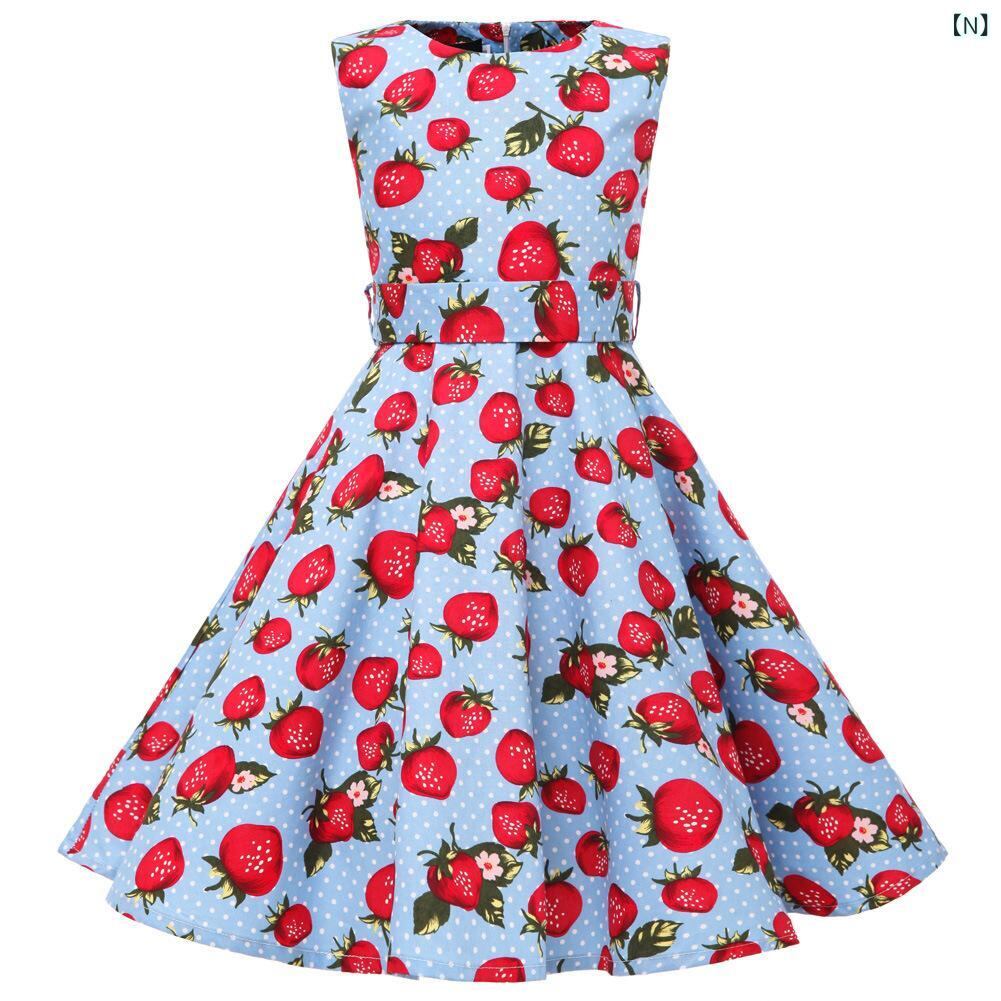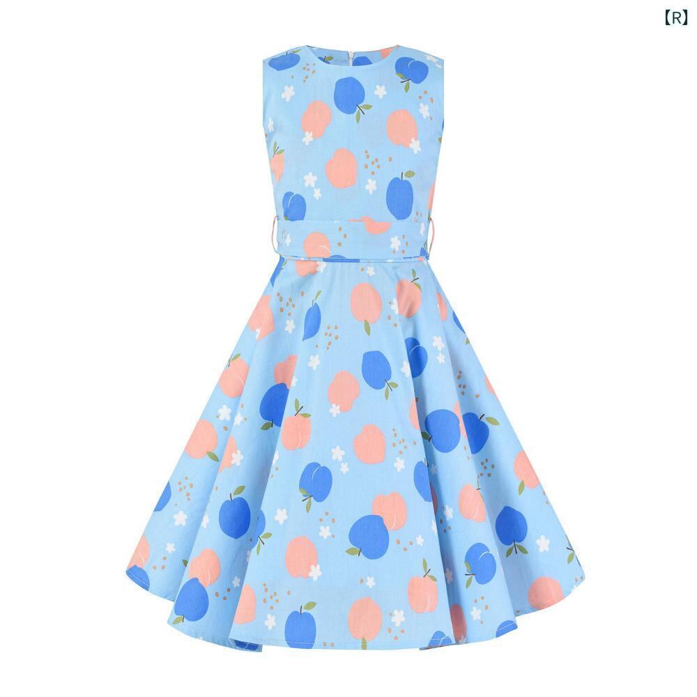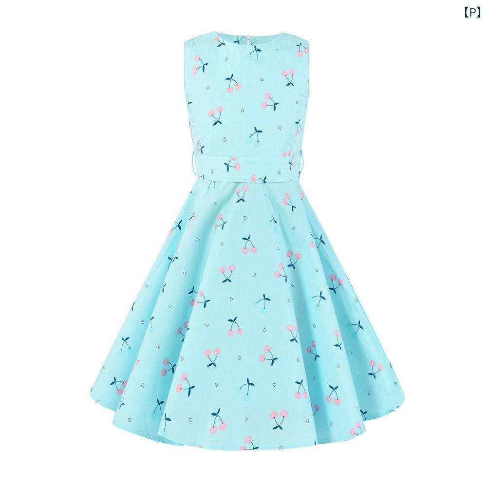 ワンピース 女の子 子供 105cm 115cm 125cm 135cm 145cm 155cm 3歳 4歳 5歳 6歳 7歳 8歳 9歳 10歳 11歳 12歳 13歳 14歳 王室風 復古風 ノースリーブ Aライン パーティー 青花磁 牡丹 桜桃 サ