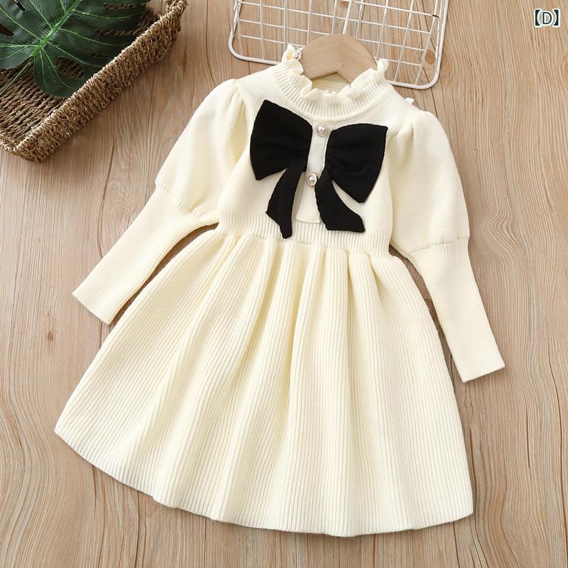 ワンピース キッズ 女の子 ニット 秋冬 長袖 プリンセス チュールスカート 子供服 かわいい 蝶結び付き Aライン フレアスカート 通園 通学 お出かけ 普段使い