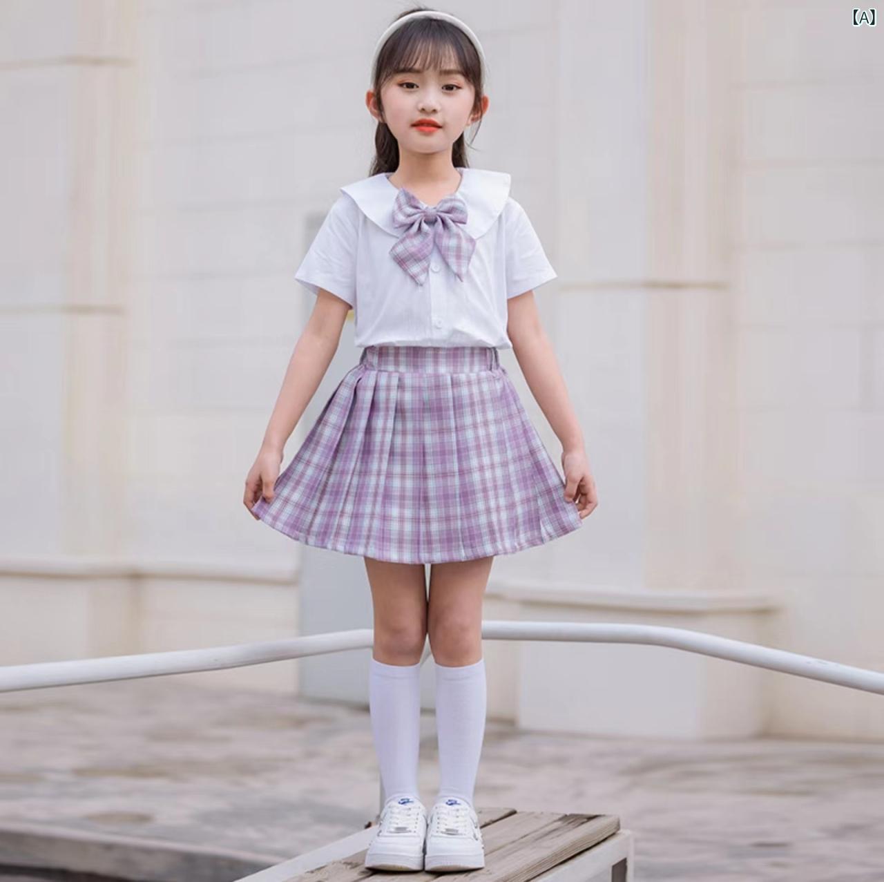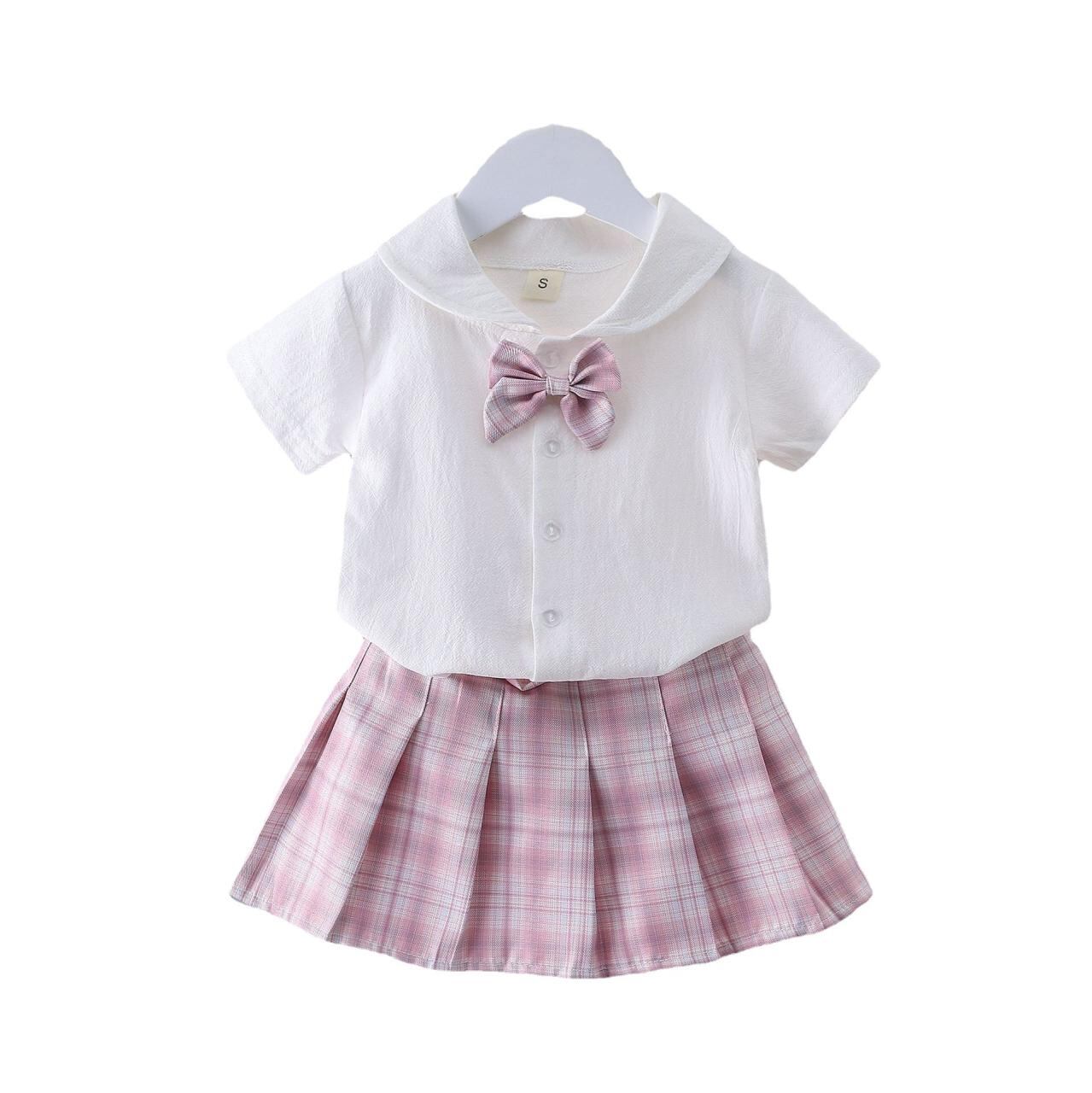 子供服 女の子 JK スカートセット 薄手 綿麻 チェック柄 プリンセススタイル 半袖 2点セット 80cm 90cm 100cm 110cm 120cm 130cm 140cm 150cm 160cm