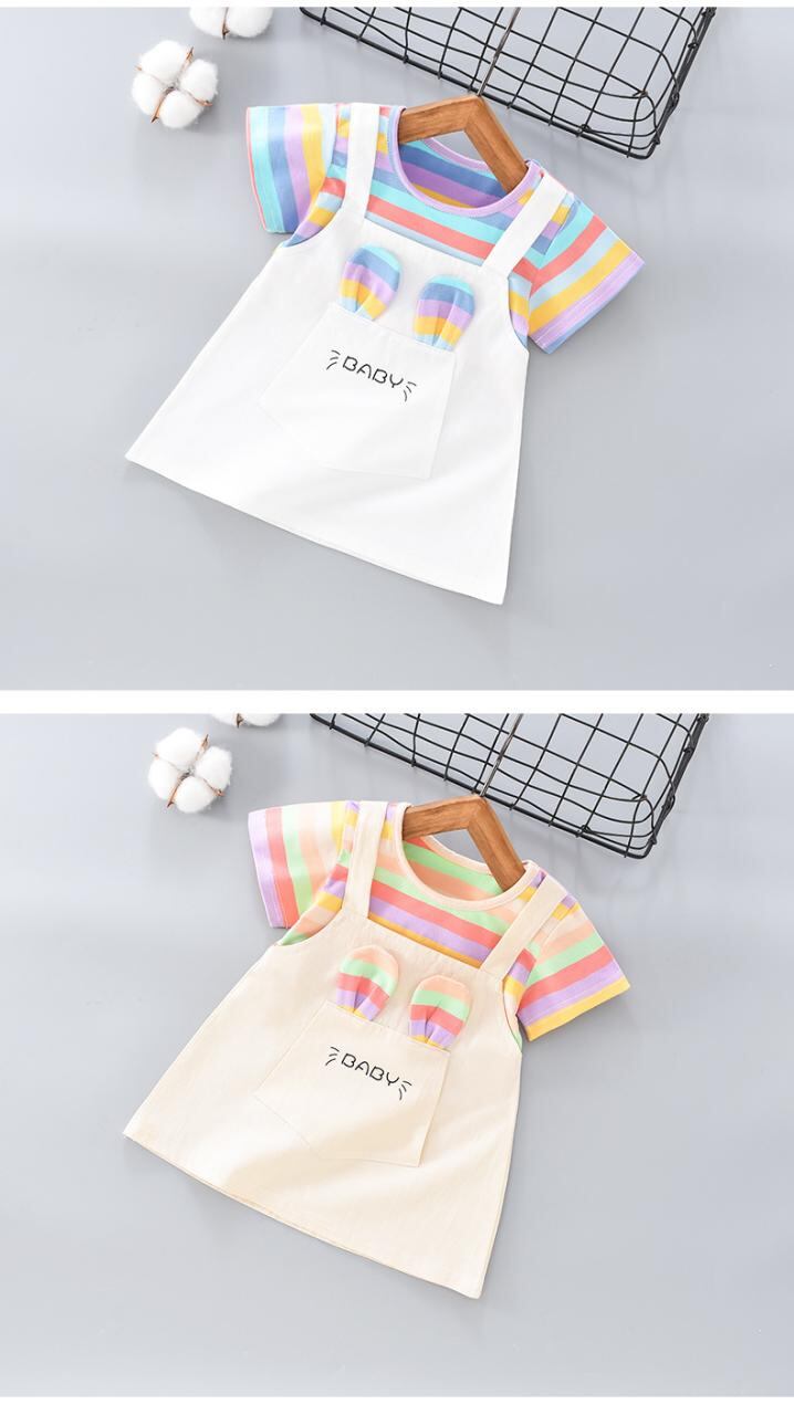 ワンピース キッズ 子供服 女の子 夏 半袖 Aライン スカート ストライプ かわいい 綿100% 薄手 普段使い お出かけ