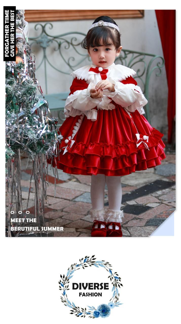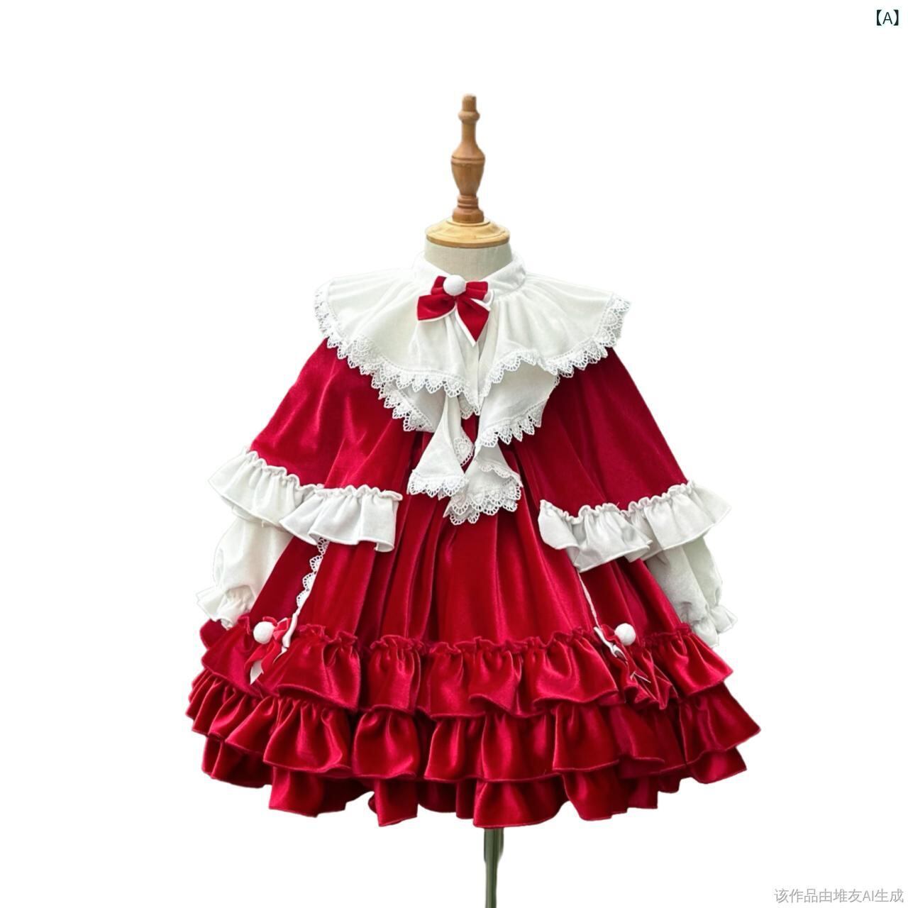 ワンピース 子供 女の子 ロリータ プリンセス クリスマス 新年 長袖 チュール Aライン パニエ 発表会 結婚式 パーティー フォーマル 赤色 90 100 110 120 130 140 150