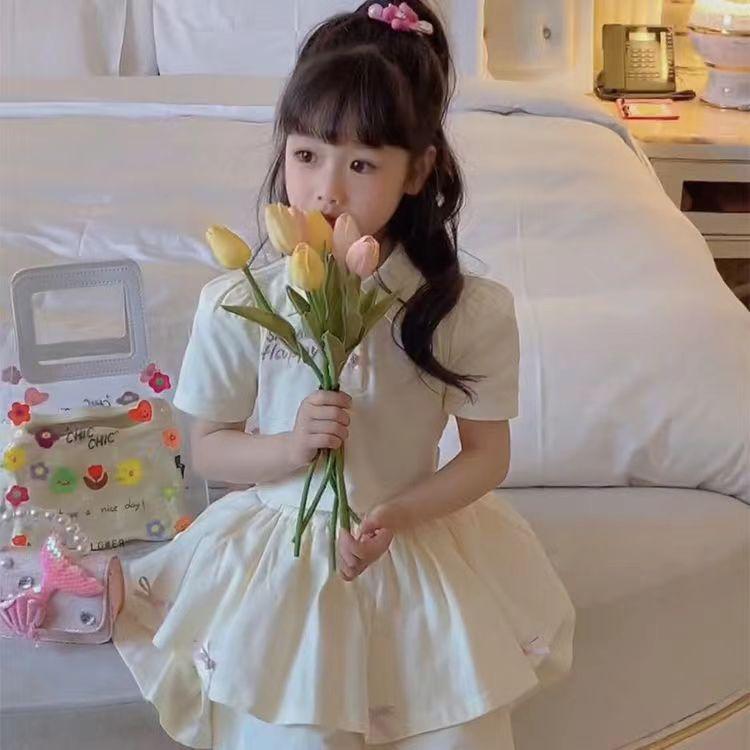 ワンピース 女の子 Tシャツ セットアップ 子供服 プリンセススタイル 半袖 膝丈 チュールスカート かわいい おしゃれ 普段着 お出かけ着 ポリエステル 100 110 120 130 140 150 160 杏色