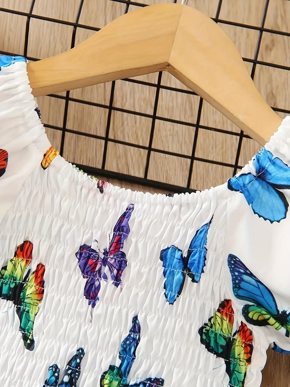 ワンピース 女の子 子供服 夏服 蝶柄 ポリエステル Aライン かわいい ノースリーブ 1歳 2歳 3歳 4歳 5歳 6歳 7歳 8歳