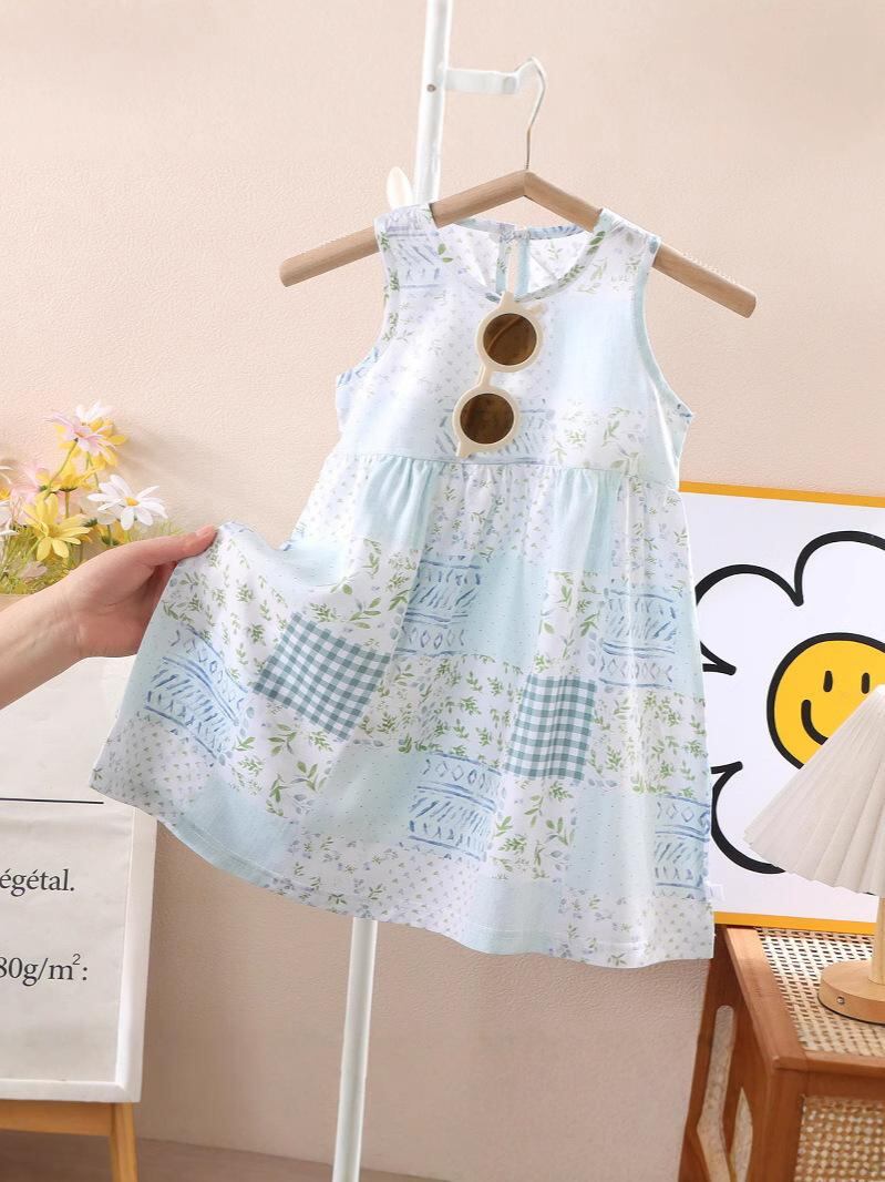 ワンピース 子供 女の子 ノースリーブ 花柄 プリンセス チュール 薄手 かわいい 膝丈 夏 春夏 粘纤 快適 73cm 80cm 90cm 100cm 110cm 120cm 130cm 140cm 150cm