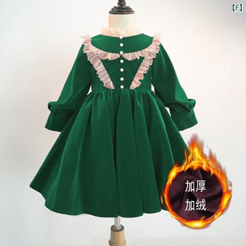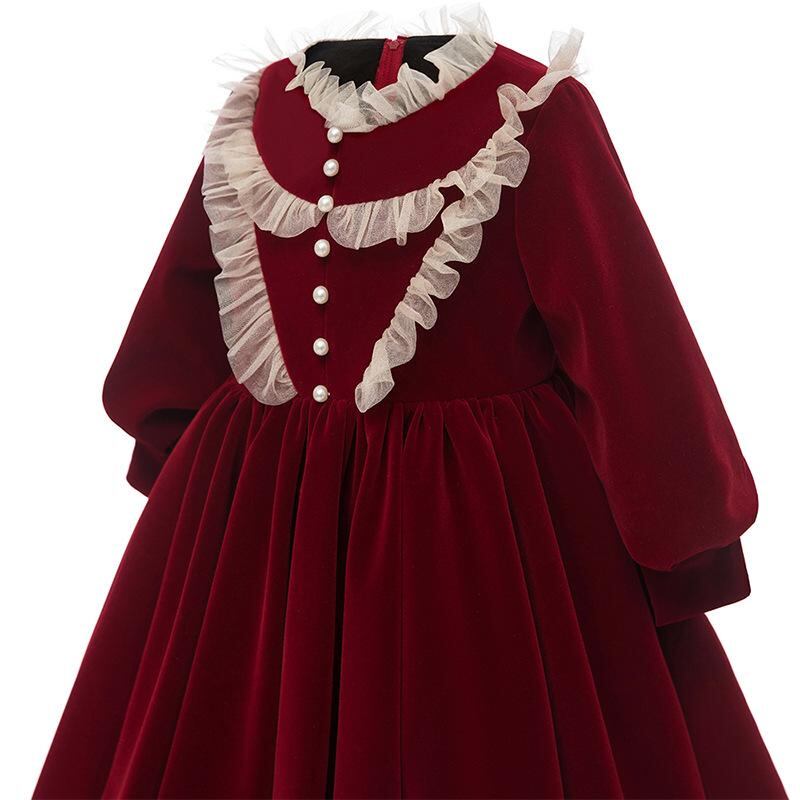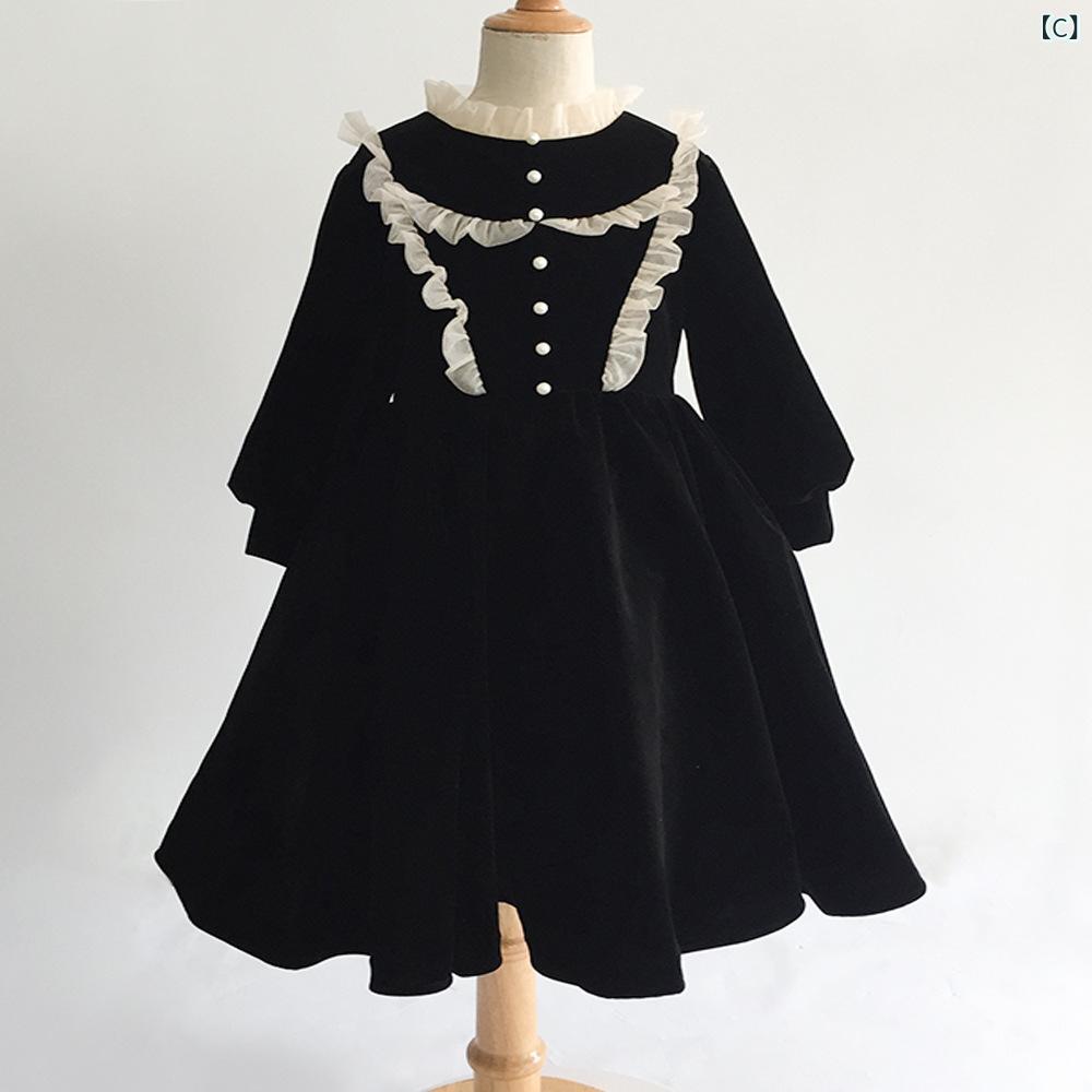 ワンピース キッズ 女の子 ベルベット プリンセスドレス 結婚式 発表会 Aライン ワインレッド ブラック グリーン 90cm 100cm 110cm 120cm 130cm 140cm 150cm 160cm 春秋冬