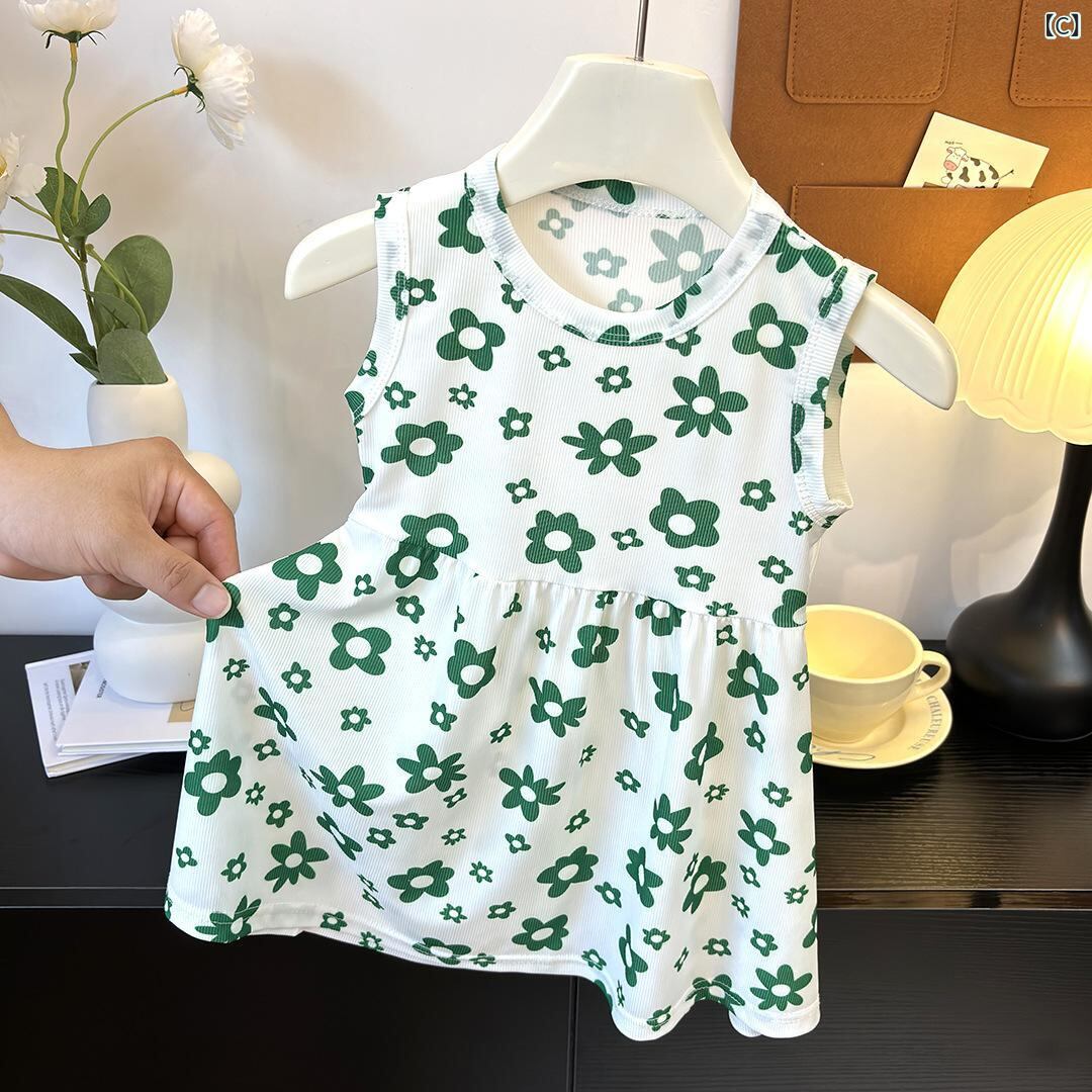 ワンピース キッズ 女の子 子供服 ノースリーブ プリンセス 接触冷感 再生繊維 花柄 かわいい サマーワンピース