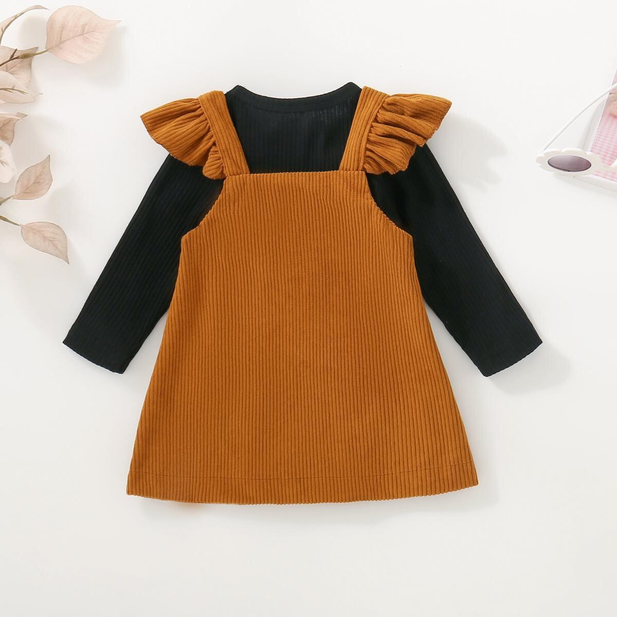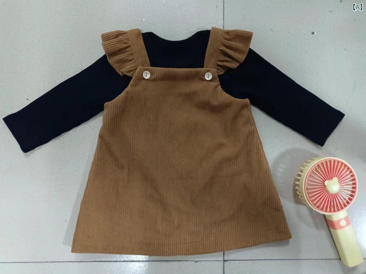ワンピース ベビー キッズ 長袖 コーデュロイ サロペット セットアップ 綿 深棕色 ピンク系 褐色 浅紫色 70cm 80cm 90cm 100cm 110cm