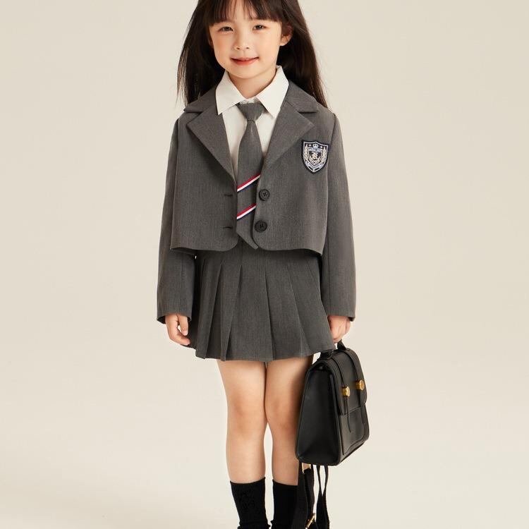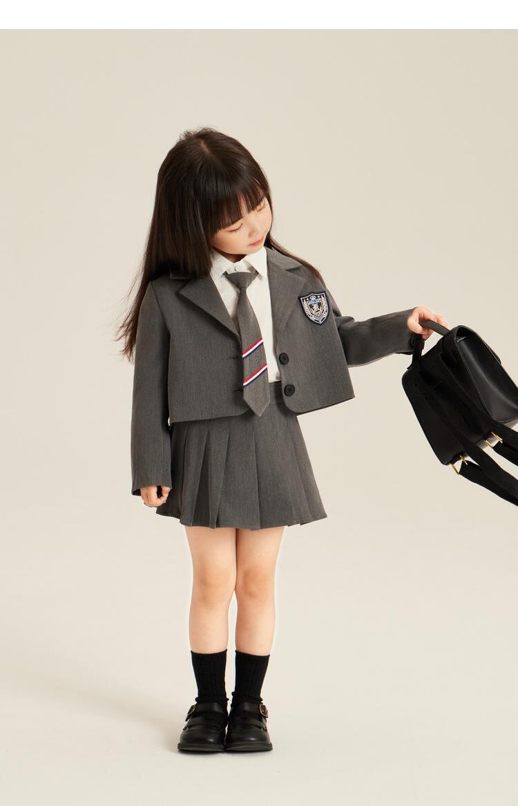 子供服 女の子 スーツ 3点セット フォーマル ジャケット シャツ プリーツスカート 学院風 グレー 100cm 110cm 120cm 130cm 140cm 150cm 160cm