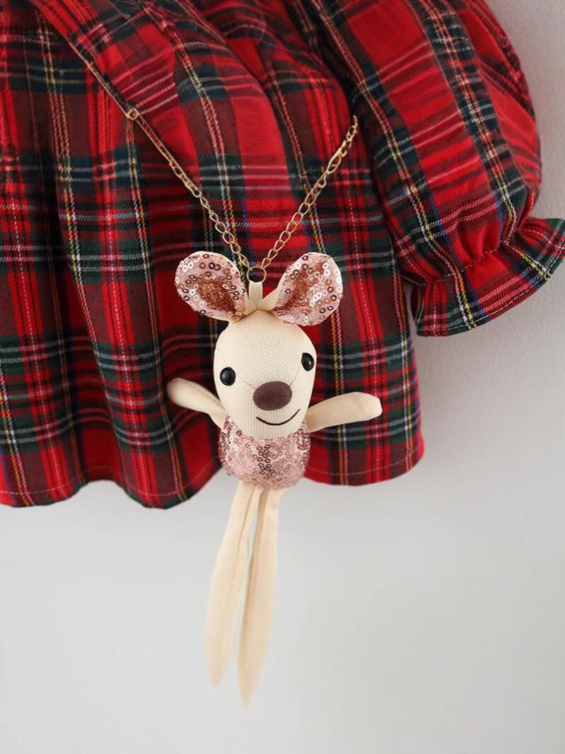 ワンピース キッズ 女の子 長袖 チェック柄 大襟 春秋 かわいい ウサギ飾り付き コットン 80 90 100 110cm 幼児