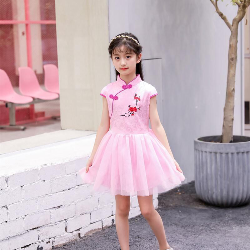 ワンピース キッズ 女の子 子供 中大サイズ A字スカート プリンセススタイル 110cm 120cm 130cm 140cm 150cm 160cm 民族衣装風 ホワイト 牡丹柄