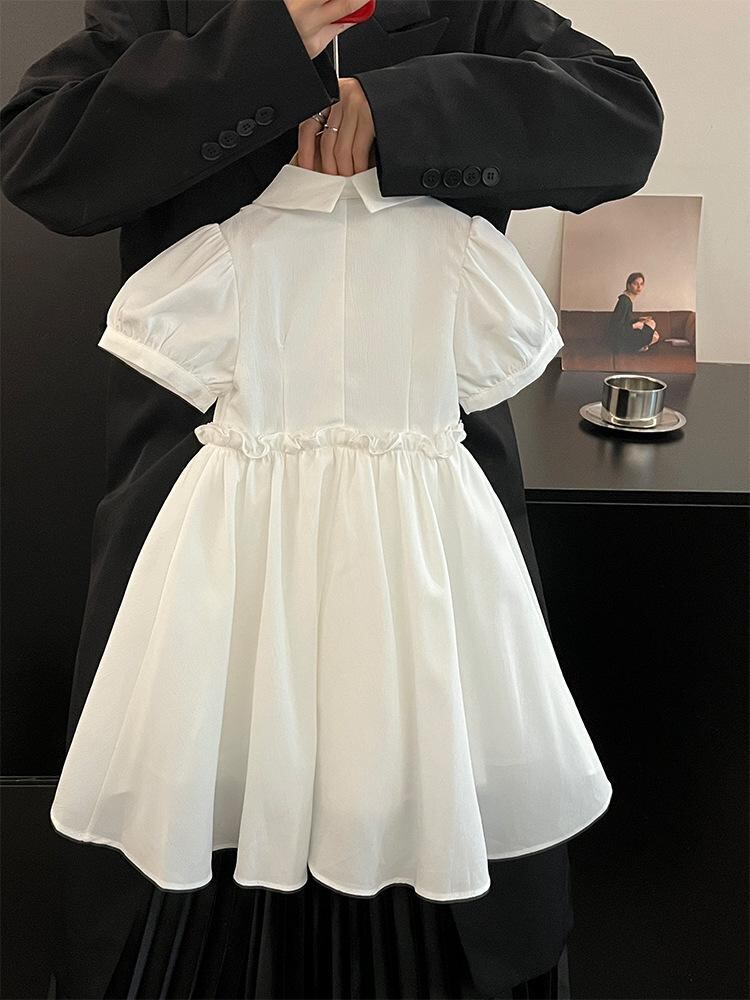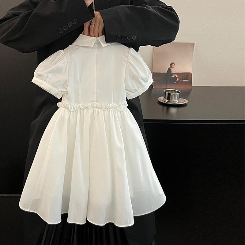ワンピース 女の子 夏服 半袖 パフスリーブ コットン 混紡 Aライン フレアスカート チュールスカート 無地 かわいい おしゃれ 子供服 キッズ ガールズ 90 100 110 120 130 140