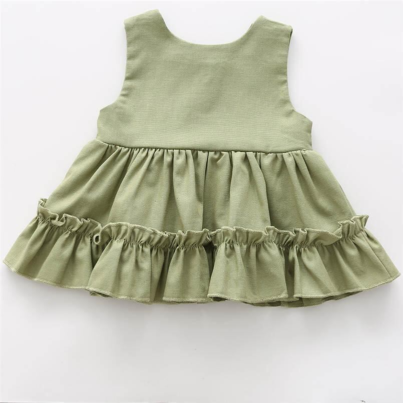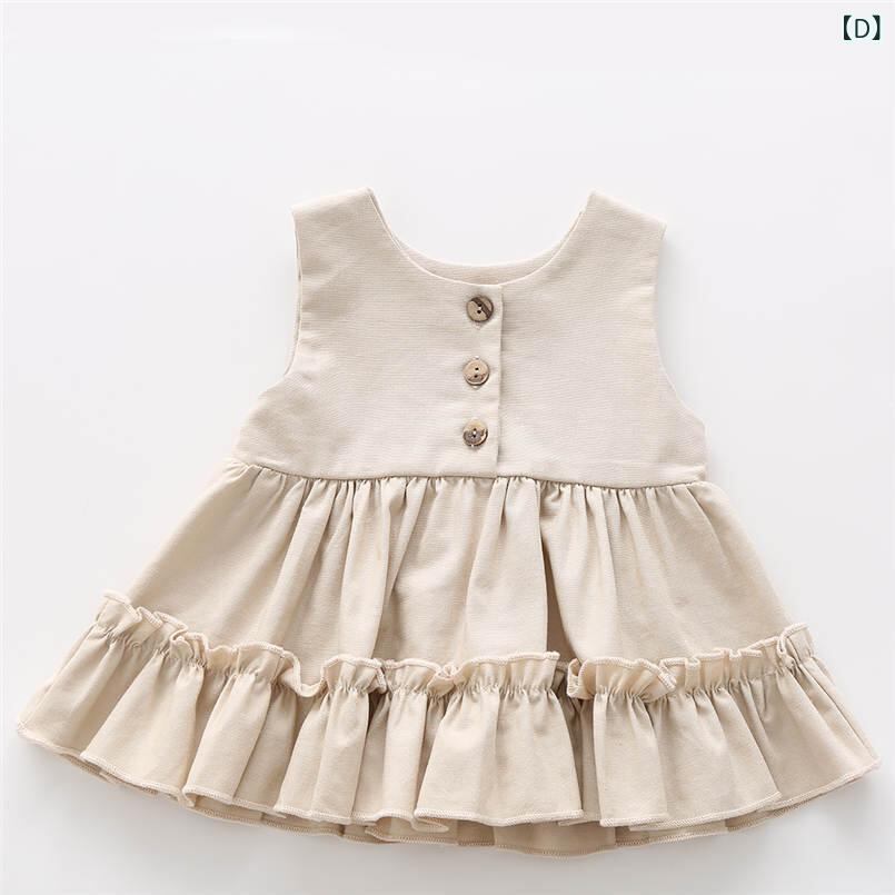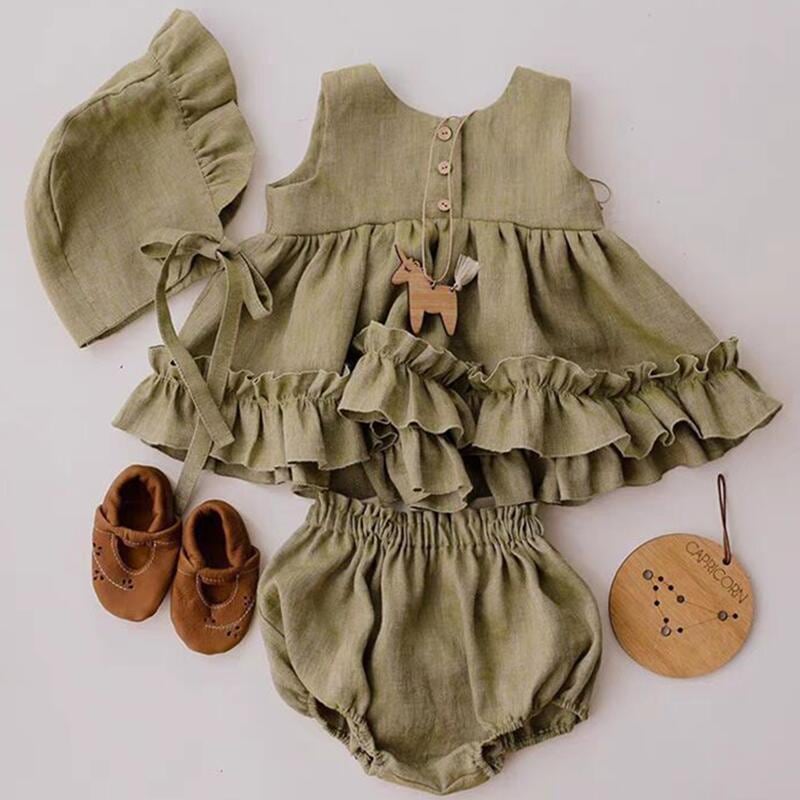 ワンピース 子供服 女の子 コットン リネン ノースリーブ 裾フリル ブルマパンツ 上下セット レトロ風 かわいい 春夏 秋冬 普段使い