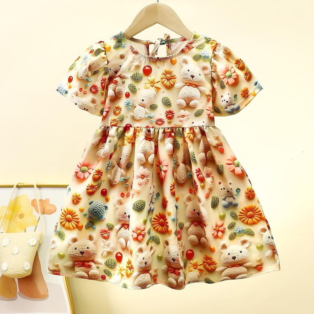 ワンピース 女の子 ベビー 子供服 プリンセス かわいい 3Dプリント 花柄 アニマル柄 カジュアル ポリエステル Aライン 膝丈 ノースリーブ 春夏