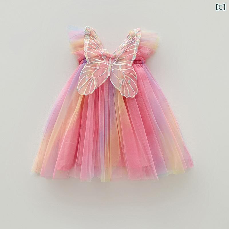 ワンピース 女の子 子供 虹色 チュール ノースリーブ プリンセススカート チュチュスカート チュールスカート ハロウィン コスプレ 衣装 かわいい 柔らかい ふんわり 80 90 100 110 120 130