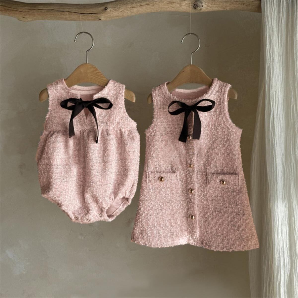 ワンピース キッズ 女の子 ノースリーブ チュニック Aライン プリンセス 蝶結び コットン ポリエステル ブラック ピンク系 子供 幼児