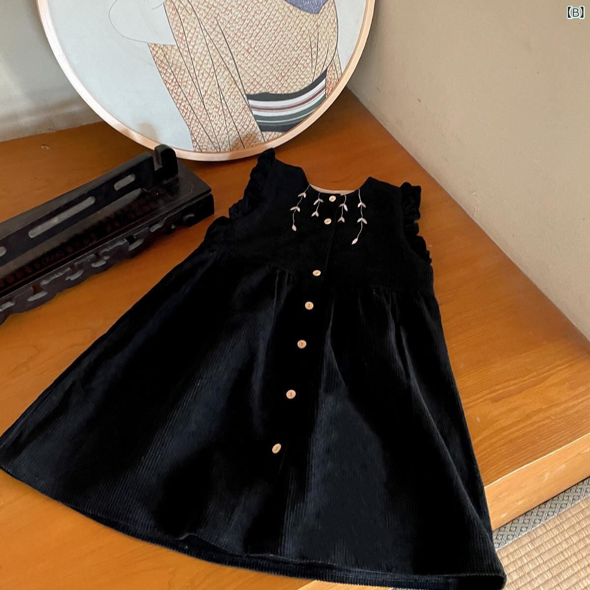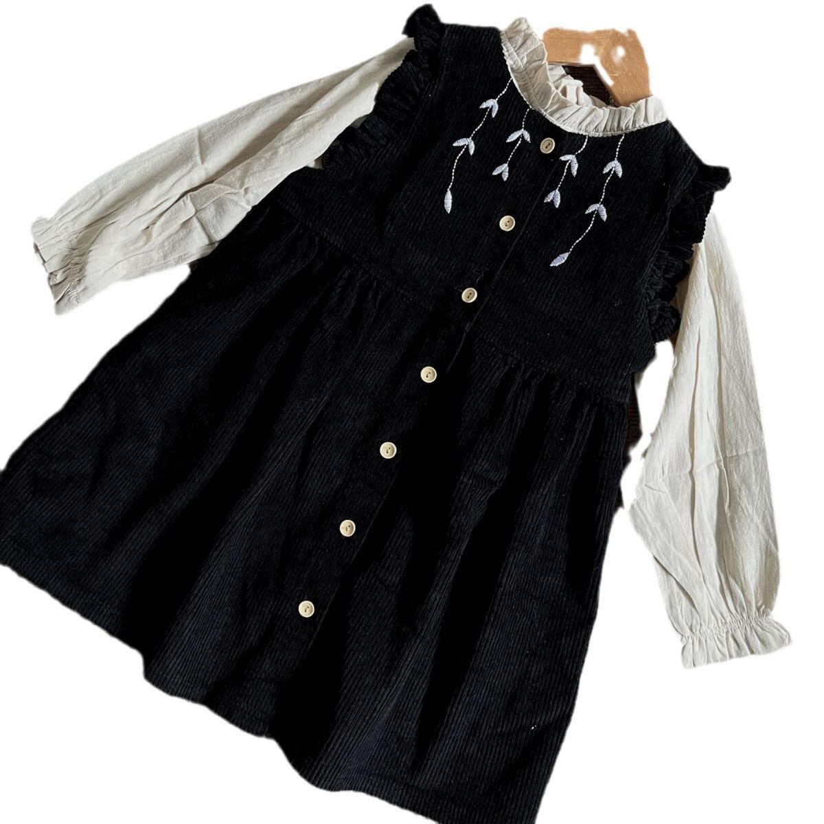 ワンピース 子供服 女の子 春秋 コーデュロイ Aライン チュニック 刺繡 ノースリーブ ワンピース シャツ セットアップ かわいい おしゃれ 普段着