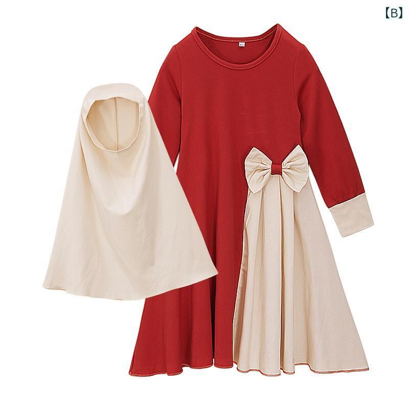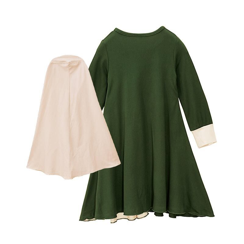 ワンピース 女の子 春秋 長袖 子供服 チュールスカート ロング丈 Aライン ギャザー 蝶結び付き ヘッドスカーフ付き 2点セット かわいい おしゃれ 普段着 お出かけ 80 90 100 110 120 130 140 グリーン レッド