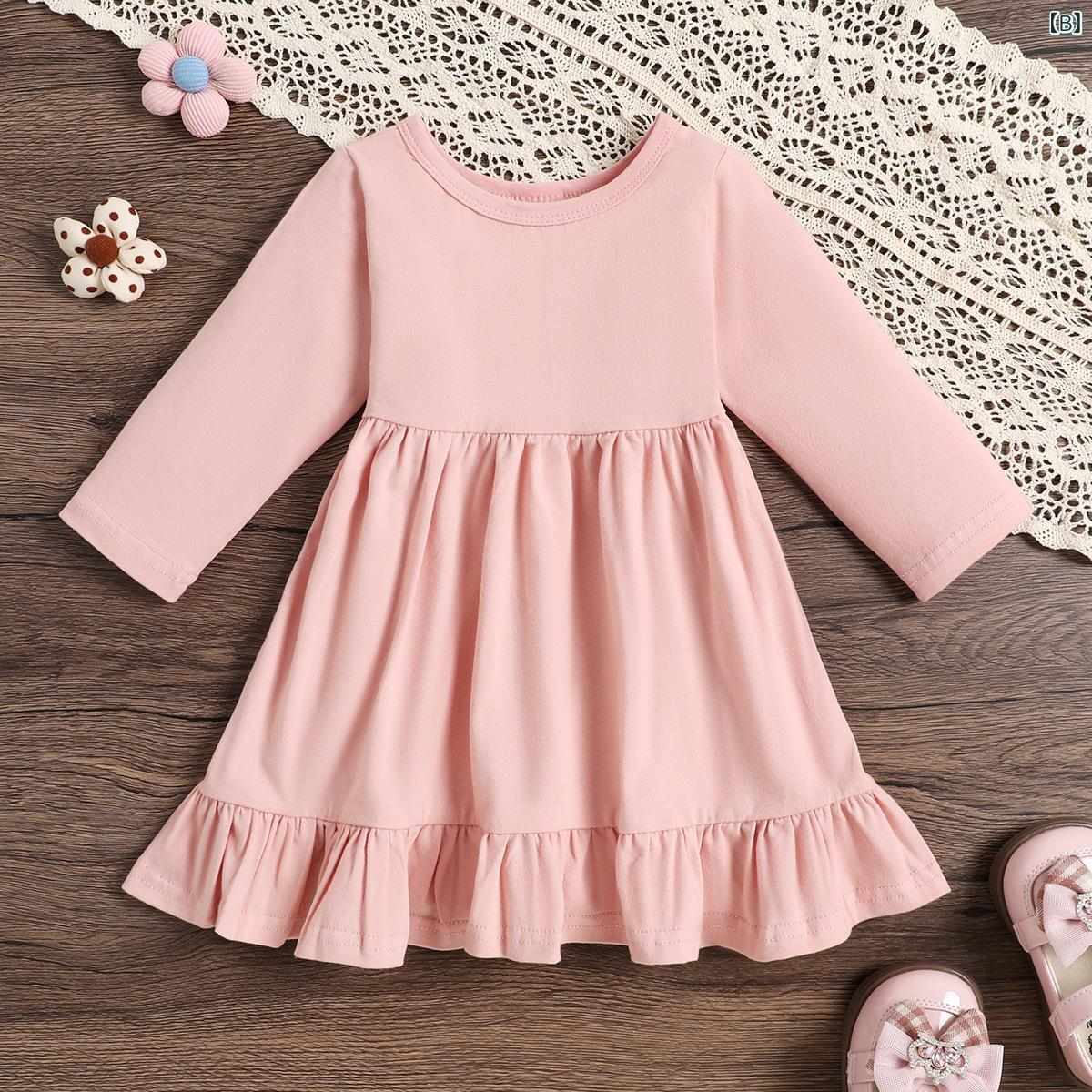 ワンピース 子供服 女の子 春秋 長袖 Aラインスカート 無地 丸首 かわいい 幼児 普段着 コットン 3色
