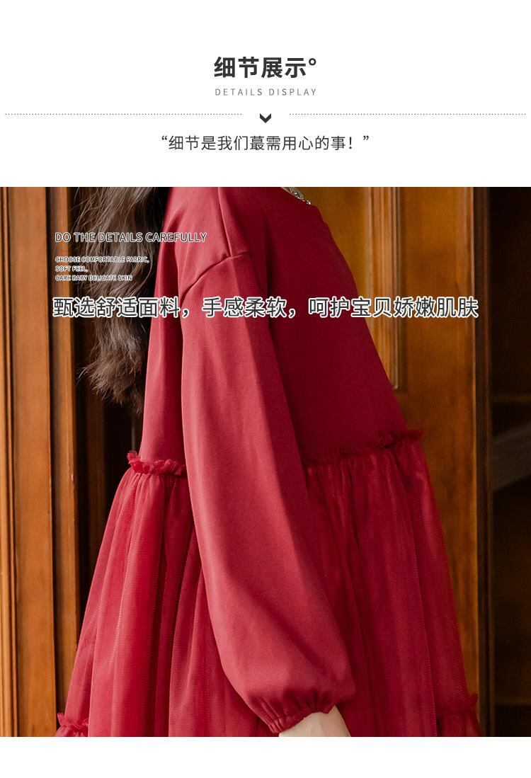 ワンピース 女児 キッズ 長袖 Aライン チュールスカート 切り替え 膝丈 子供服 女の子 春秋 冬 発表会 結婚式 かわいい 120 130 140 150 160 ブラック レッド