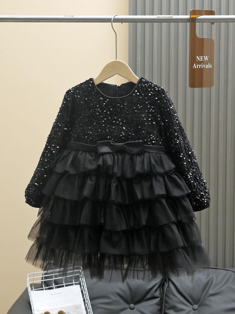 ワンピース 女の子 子供 ブラック プリンセス ドレス チュールスカート 発表会 結婚式 パーティー フォーマル 春秋 かわいい おしゃれ 上品