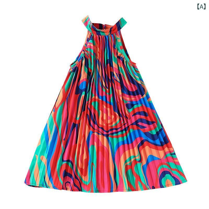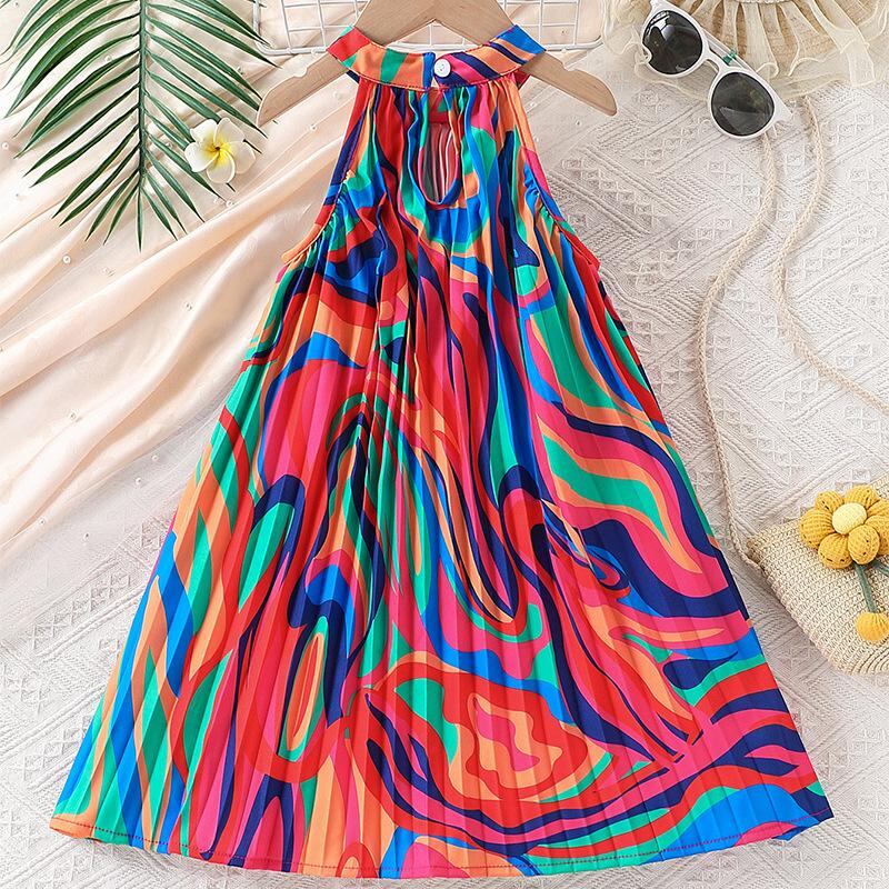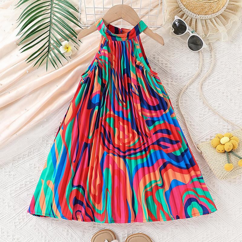 ワンピース キッズ 女の子 ボヘミアン Aライン ノースリーブ 膝丈 ポリエステル お洒落 かわいい 夏