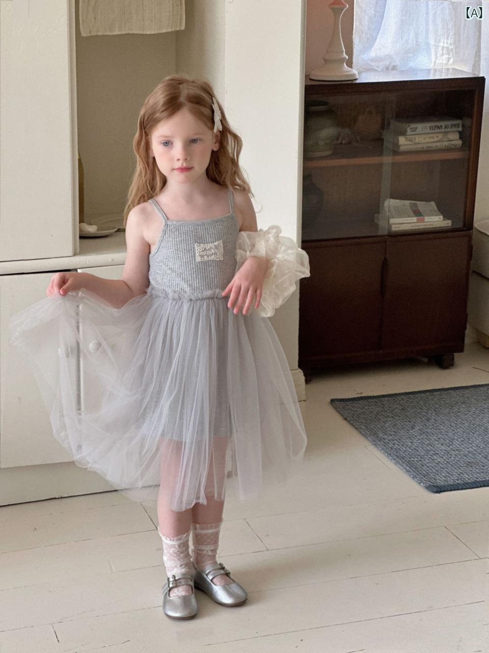 ワンピース キッズ 女の子 子供 吊りスカート 春夏 ニット プリンセス グレー 灰色 グリーン 緑 90cm 100cm 110cm 120cm 130cm 140cm 150cm