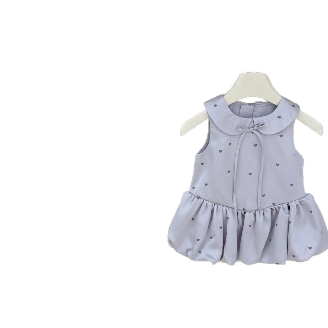 ワンピース キッズ 女の子 夏物 子供服 花柄 プリンセス かわいい 綿100% パープル グレー ピンク 80 90 100 110 120 130