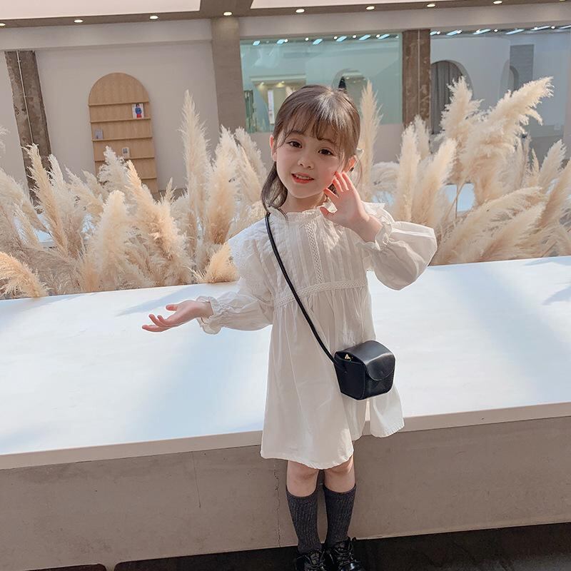 ワンピース 女の子 長袖 プリンセス チュニック Aライン コットンブレンド 森ガール かわいい おしゃれ 無地 アイボリー 膝丈 ミディアム丈 春秋