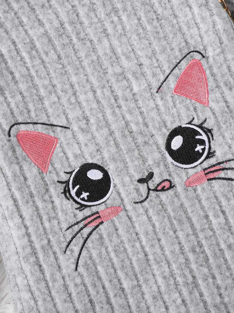 ワンピース キッズ 猫 刺繍 ニット 秋冬 長袖 Aライン かわいい ポリエステル