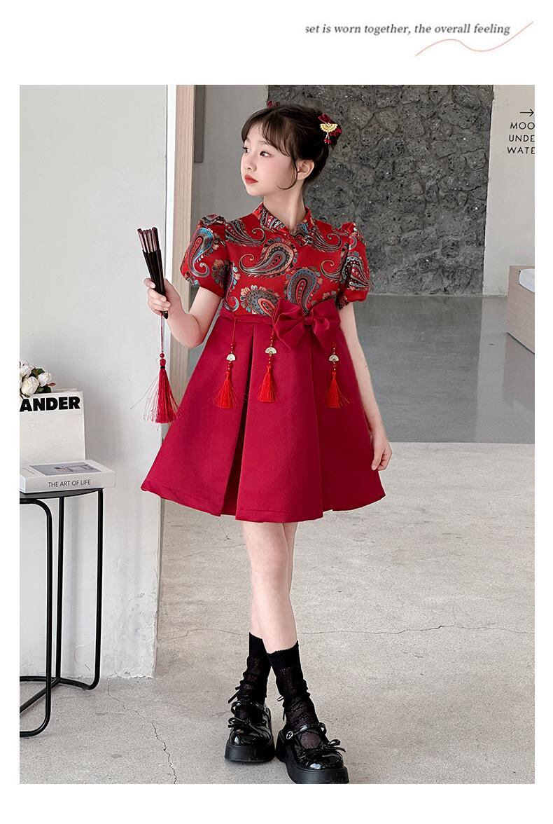ワンピース 女の子 子供服 チャイナドレス風 Aライン チュールスカート 発表会 演奏会 レッド ポリエステル