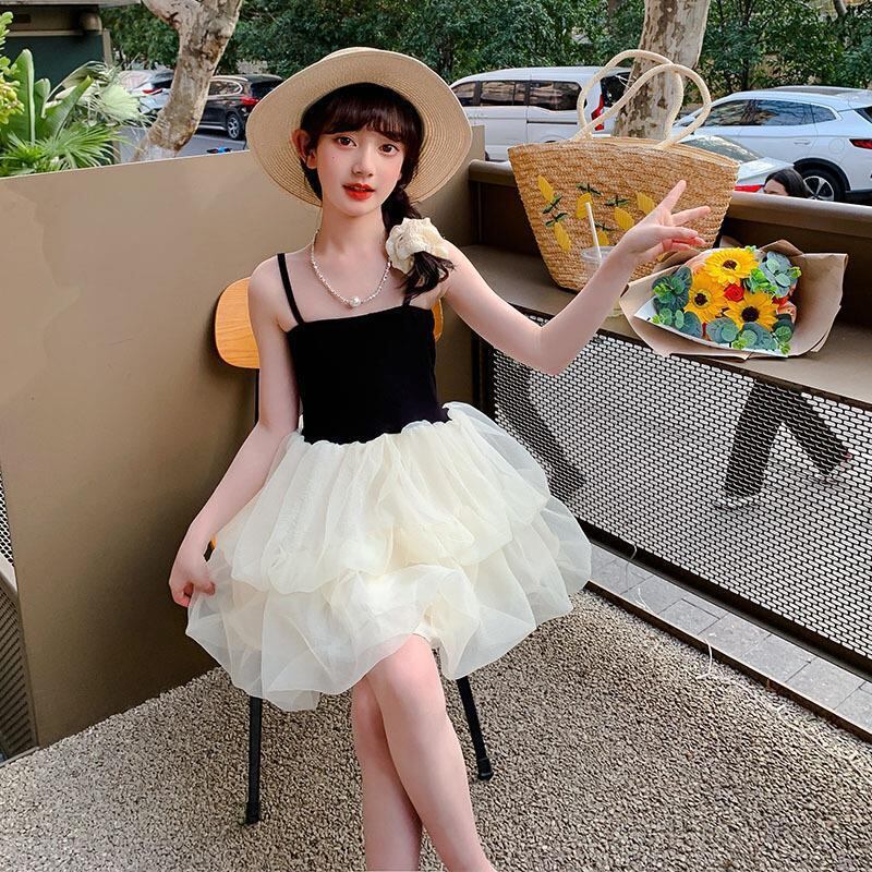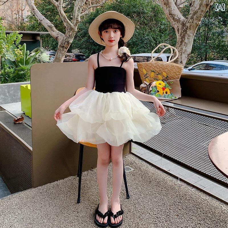 ワンピース キッズ 女の子 夏 吊りスカート チュールスカート シャンパン色 ブラック フォーマル 発表会 結婚式 パーティー プリンセス かわいい おしゃれ 110cm 120cm 130cm 140cm 150cm 160cm 170cm