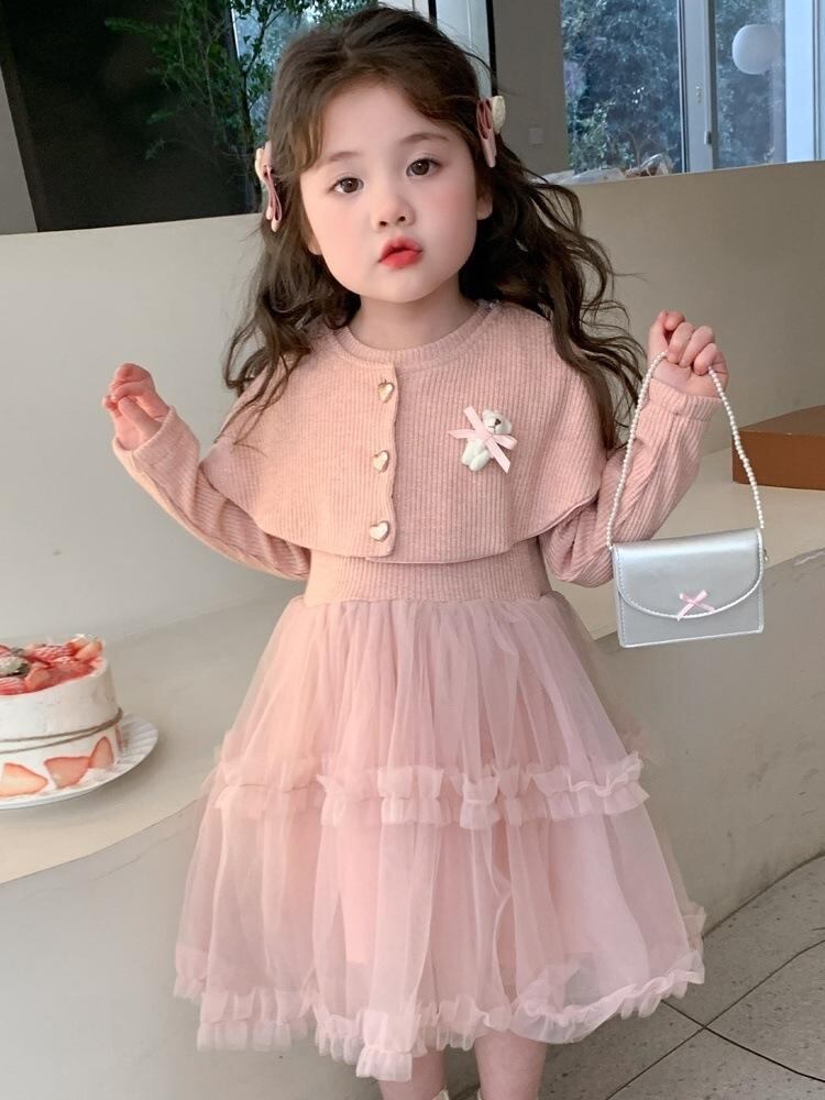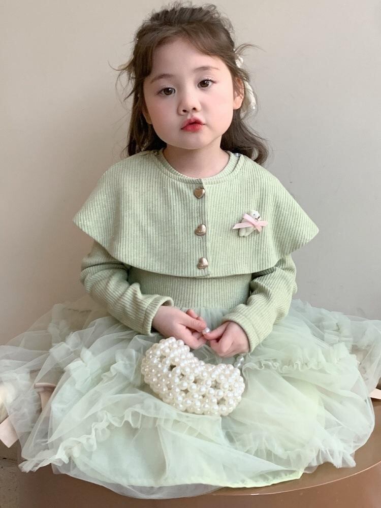 ワンピース 子供服 女の子 春秋 長袖 チュール プリンセスドレス Aライン 膝丈 かわいい おしゃれ 発表会 結婚式 パーティー フォーマル セレモニー イベント 緑 グリーン 90 100 110 120 130 140