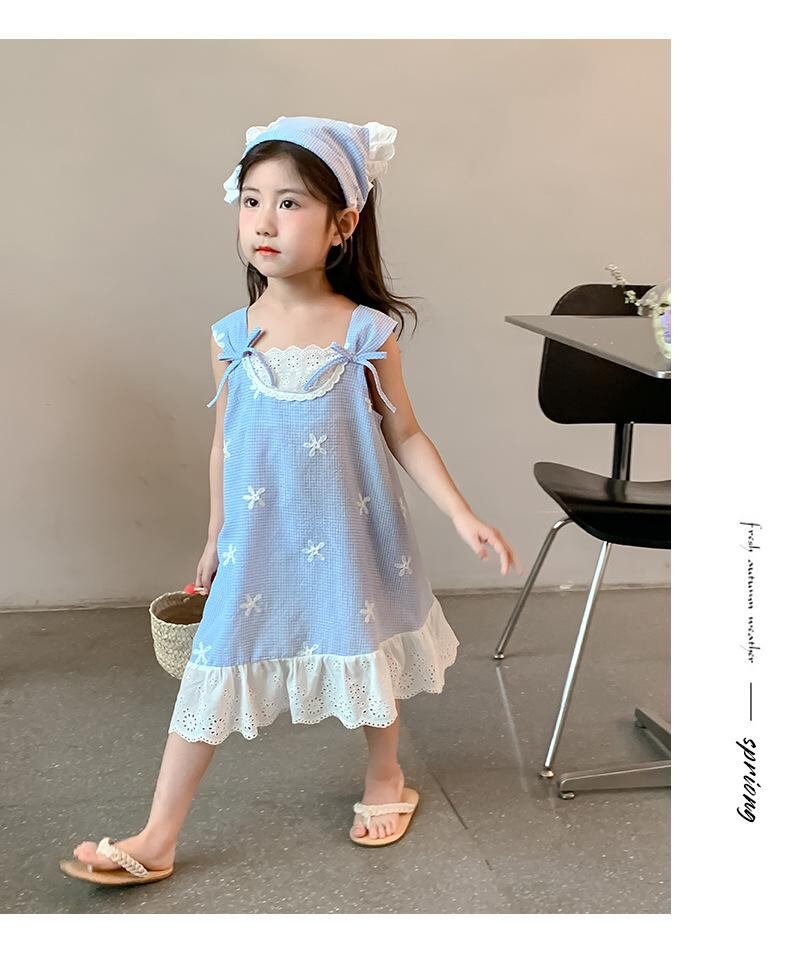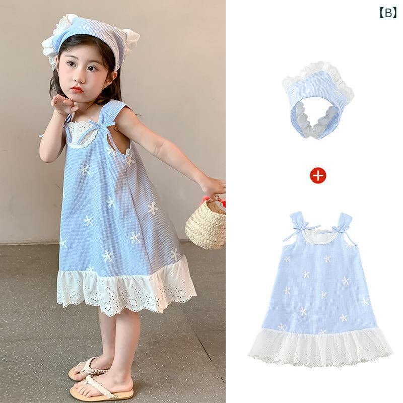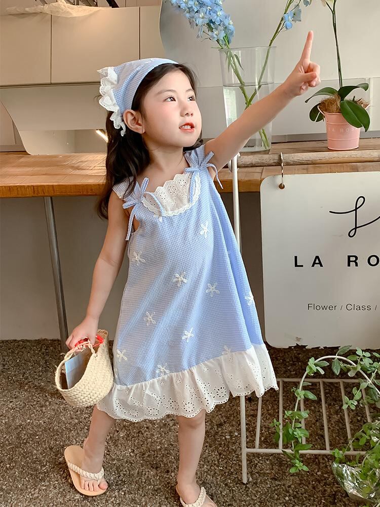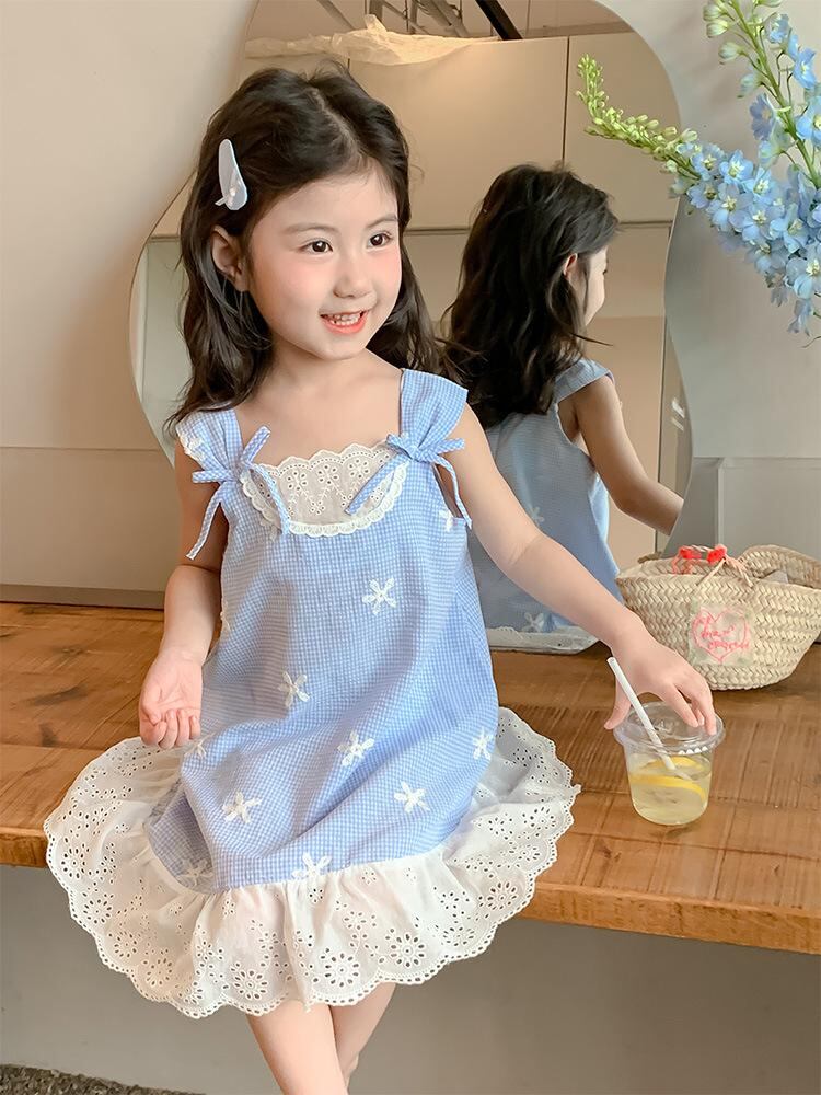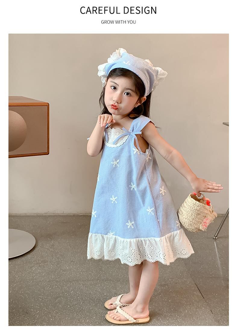 ワンピース 女の子 夏服 子供服 ノースリーブ プリンセス Aライン チュールスカート 花柄 レース かわいい 涼しい ポリエステル ブルー
