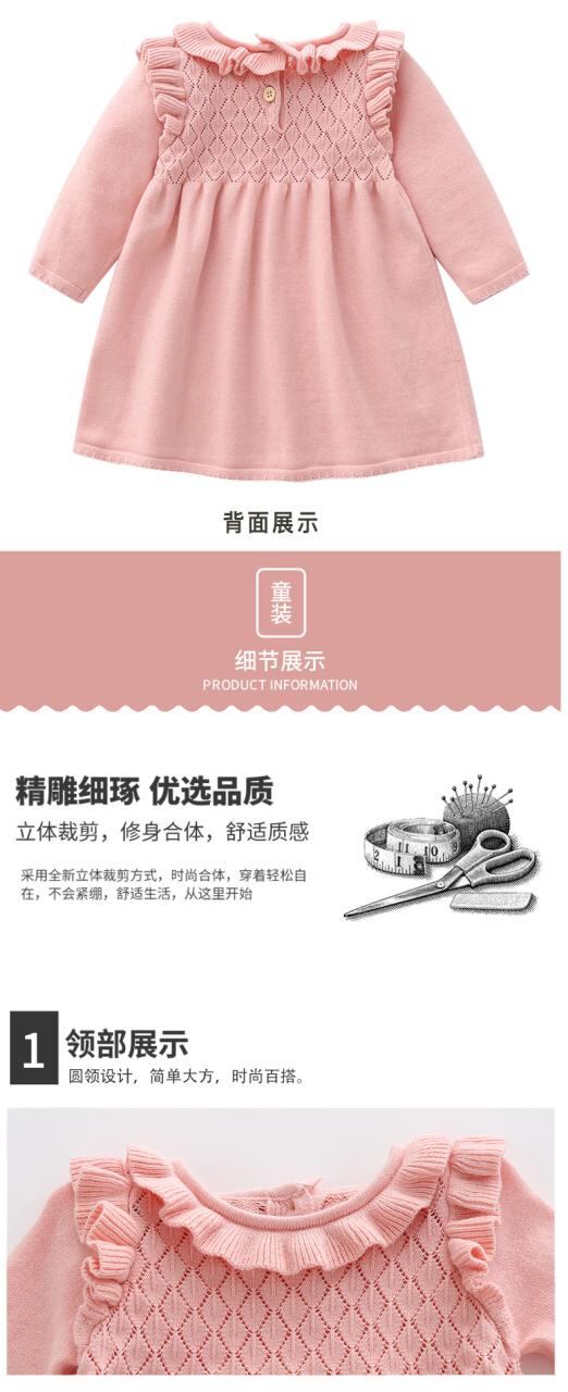 ワンピース ベビー服 ニットワンピース 秋冬 荷葉襟 Aラインスカート コットン 幼児 女の子 ピンク系 柔らかい かわいい 公主 長袖 普段着